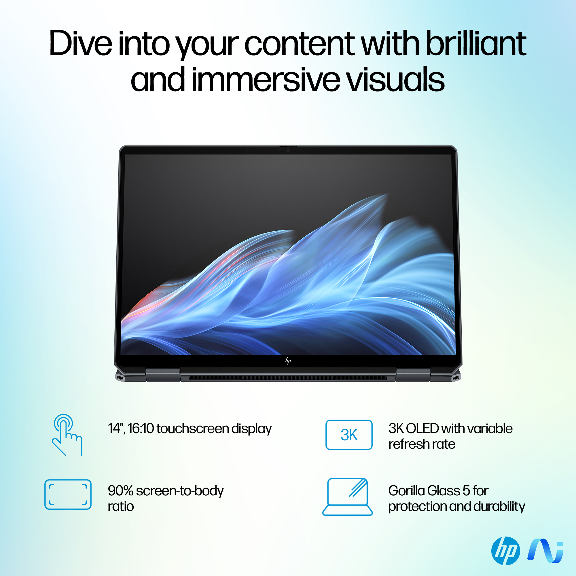 | Sustainable technologies and materials | Ocean-bound plastic in speaker enclosure(s) and bezel; Recycled metal in cover, keyboard frame, base and hinge cap(s); Keyboard keycaps and scissors contain post-consumer recycled plastic |