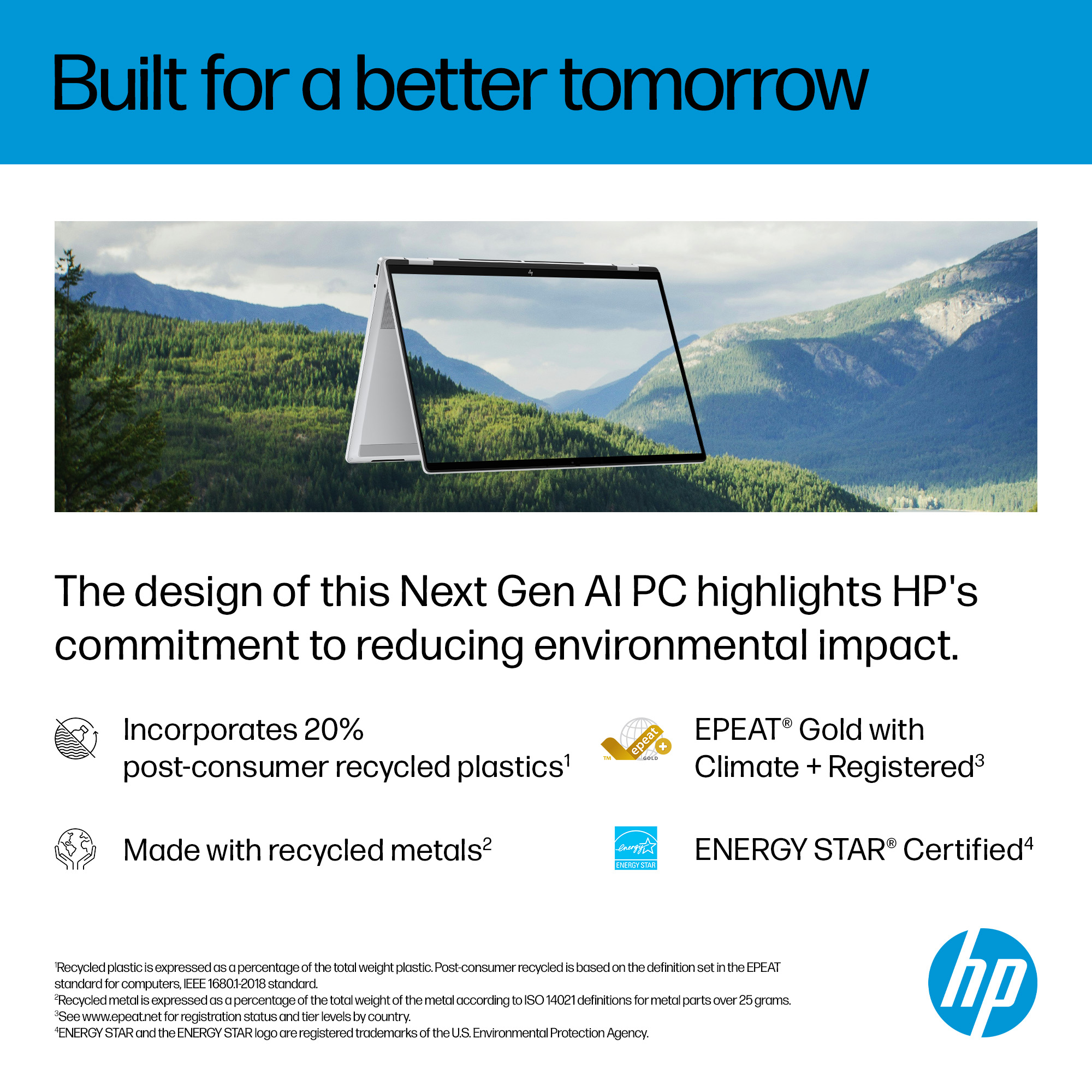 Thoughtfully designed with recycled material<sup>[2,3]</sup> and is EPEAT® Gold with Climate+<sup>[4]</sup>.
