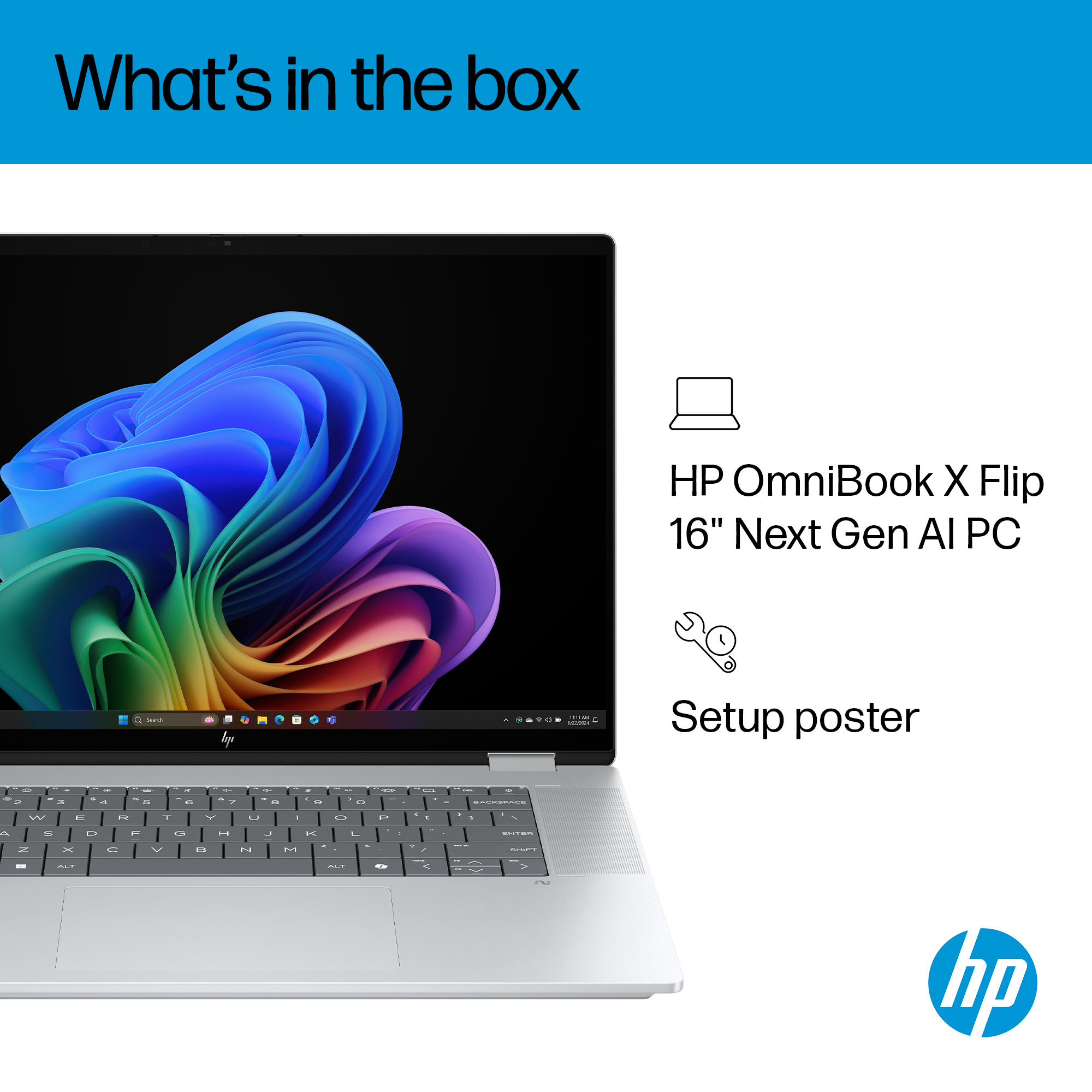 HP OmniBook X FlipNGAI 16-as0004na Copilot+ PC Intel Core Ultra 7 226V Hybrid (2-in-1) 40.6 cm (16") Touchscreen 2K 16 GB LPDDR5x-SDRAM 512 GB SSD Wi-Fi 7 (802.11be) Windows 11 Home Silver