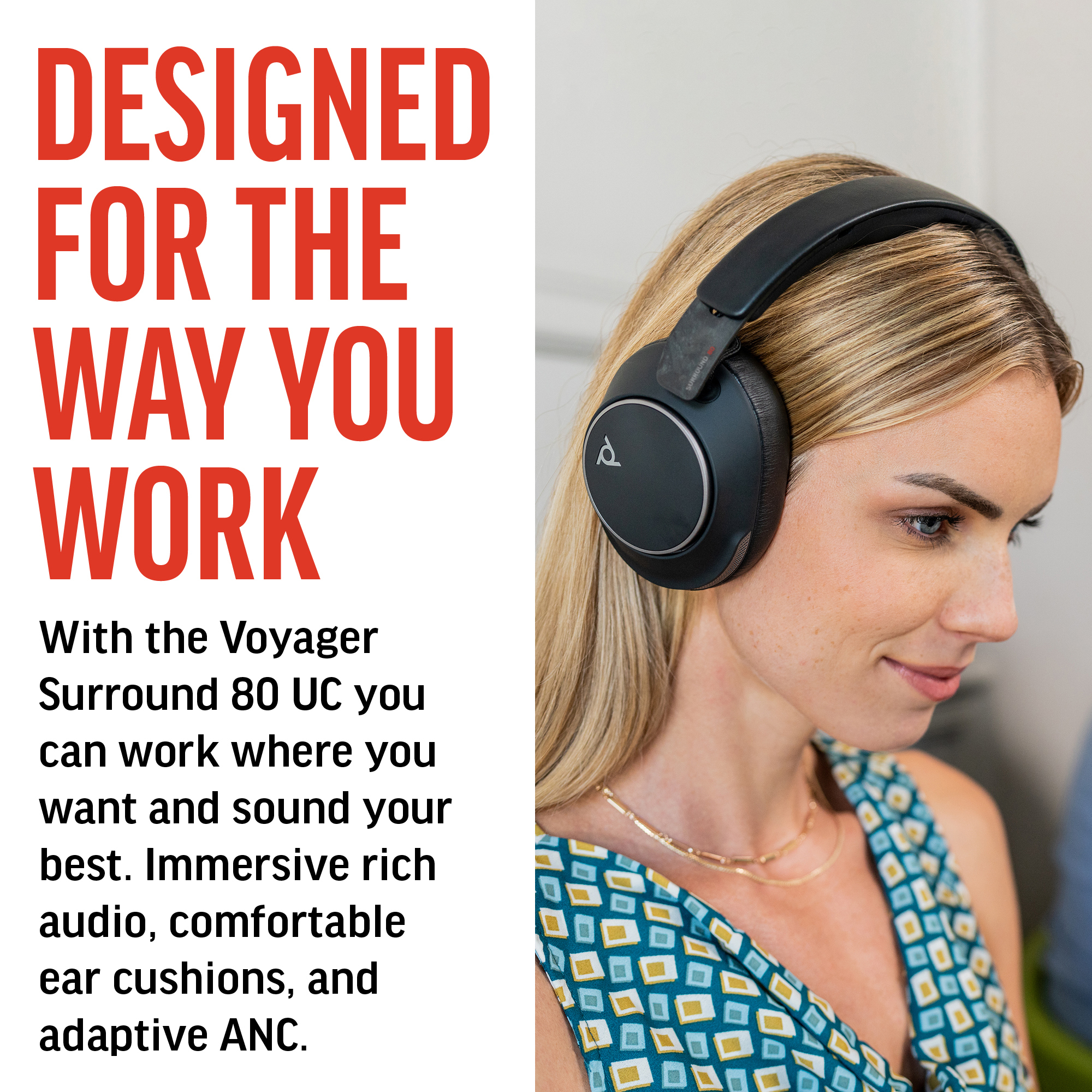 Poly Voyager Surround 80 UC - Voyager Surround 80 series - headset - full size - Bluetooth - wireless - active noise cancelling - USB-C via Bluetooth adapter - black - Certified for Microsoft Teams Open Office |