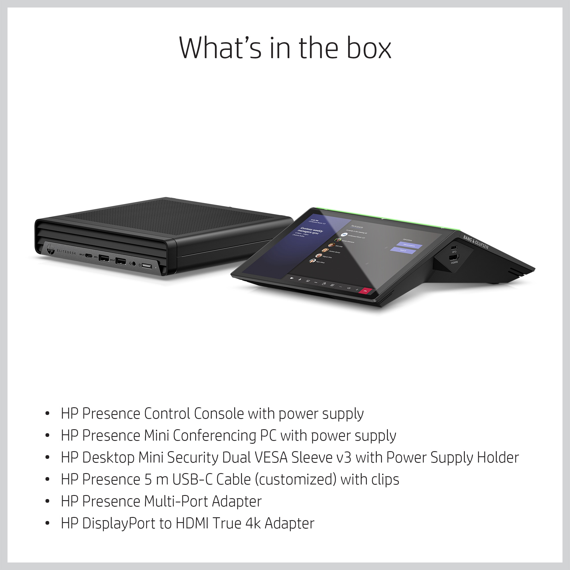 | Pre-installed software | Microsoft Teams Rooms; HP Privacy Settings; HP Desktop Support Utilities; HP TechPulse; HP Presence Smart Setup; HP Cloud Endpoint Manager; HP Presence App |