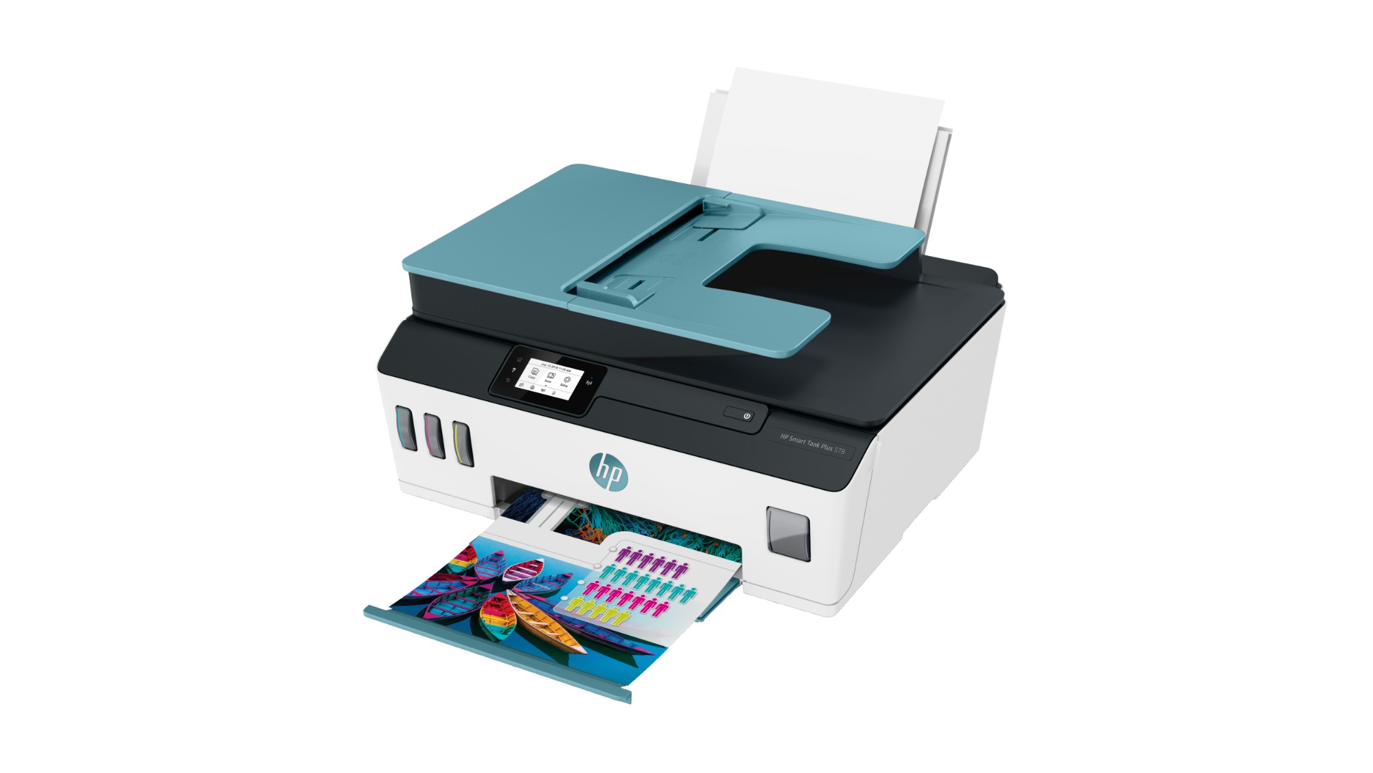 | Box contents | HP Smart Tank Plus 570; 2 x HP 32XL 135-ml Black Original Ink Bottle; HP 31 Cyan Original Ink Bottle; HP 31 Magenta Original Ink Bottle; HP 31 Yellow Original Ink Bottle; Ink caution flyer; Repacking flyer; Setup guide; Reference guide; Regulatory flyer; PT flyer; RoH-EAC Regulatory flyer; Extended warranty flyer; Power cord; For more information about fill and yield, see http://www.hp.com/go/learnaboutsupplies |