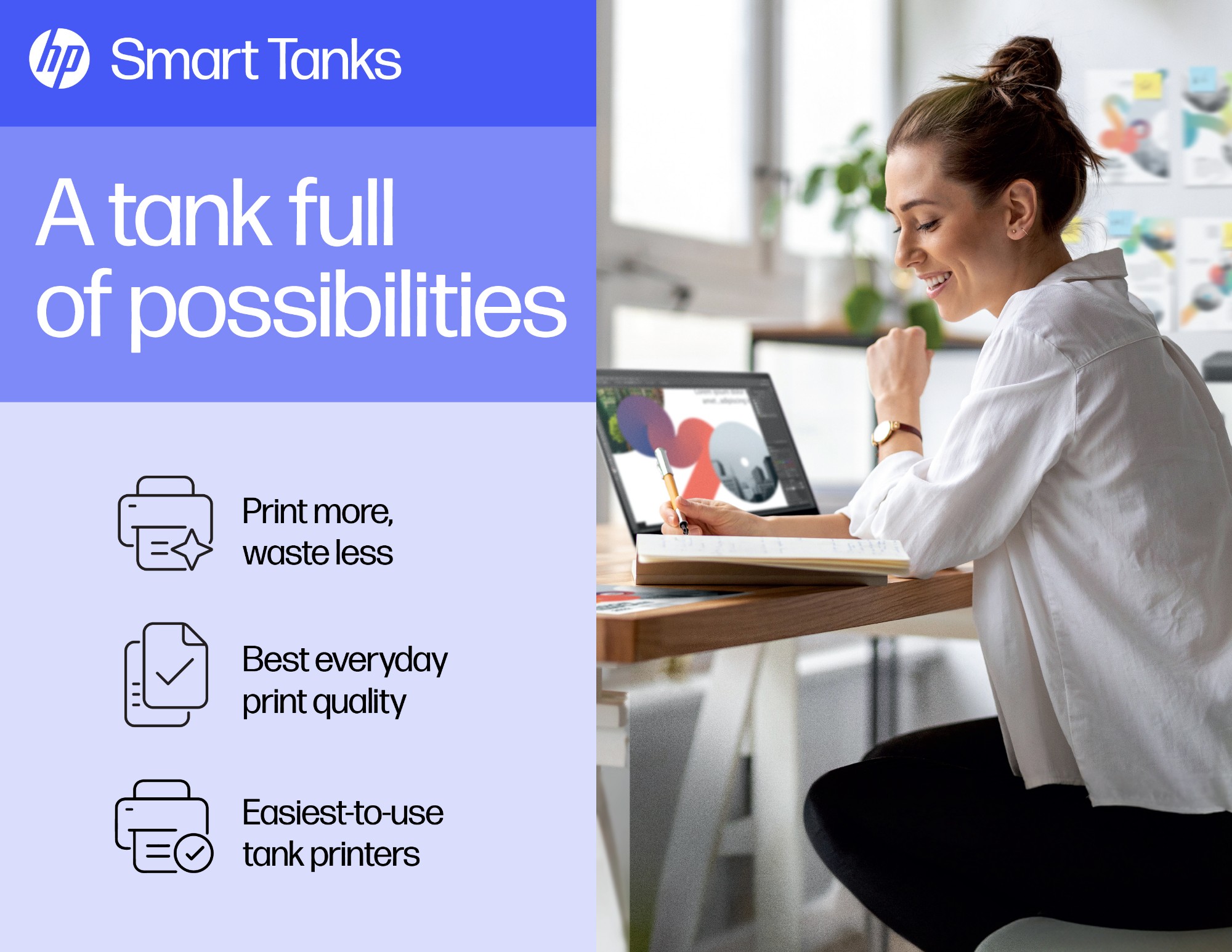 Print and scan from your phone with HP Smart app.[2] Enjoy advanced scanning for 12 months with HP Smart Tank.[9]