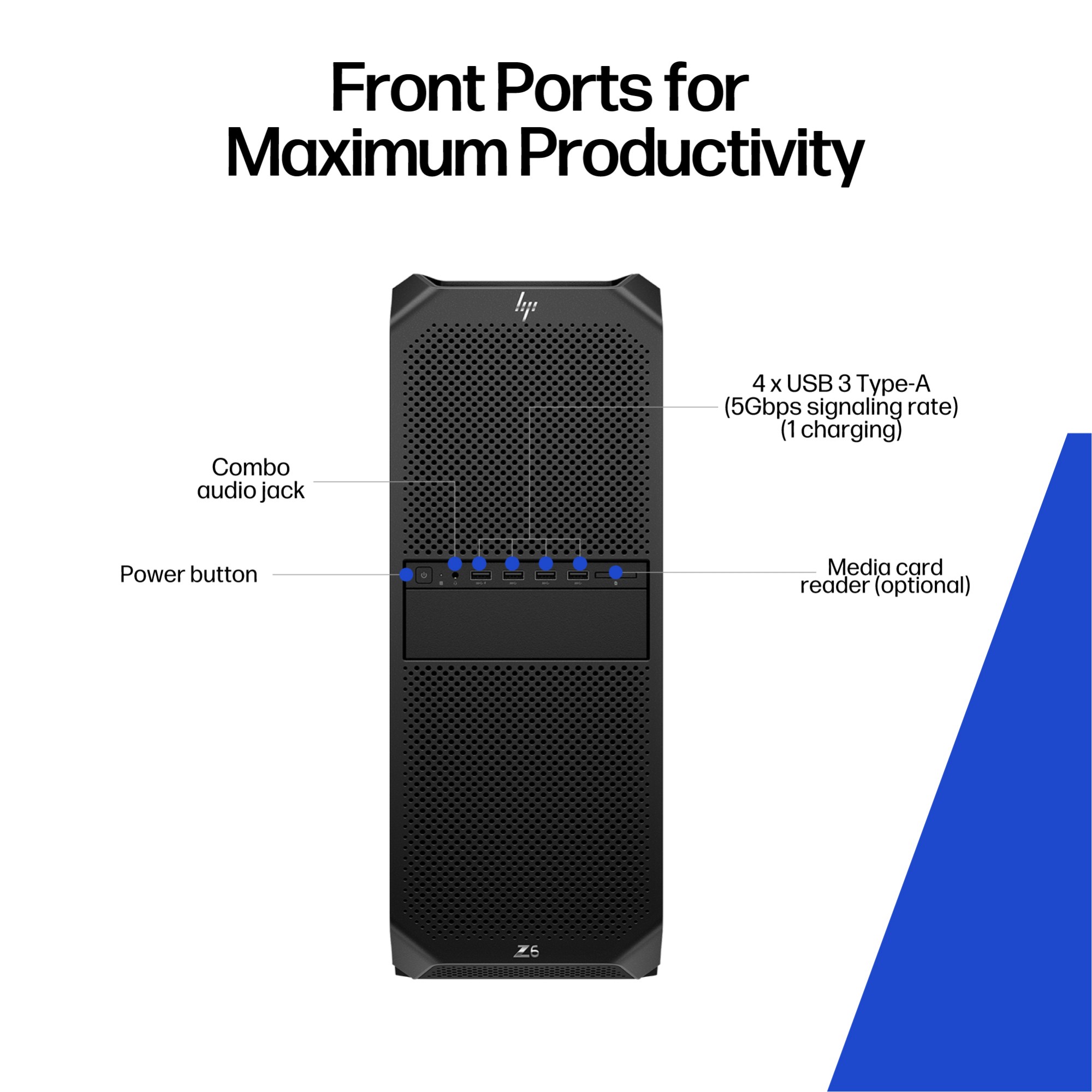 The refreshed HP Z6 G5 A is a powerhouse for AI workflows, 3D rendering and virtual production. Its innovative system design, with a next-gen AMD Ryzen™ Threadripper™ PRO CPU,[1] combines an astounding number of cores in a single CPU with up to 3 GPUs.[2] Create and render at once on intensive projects.
