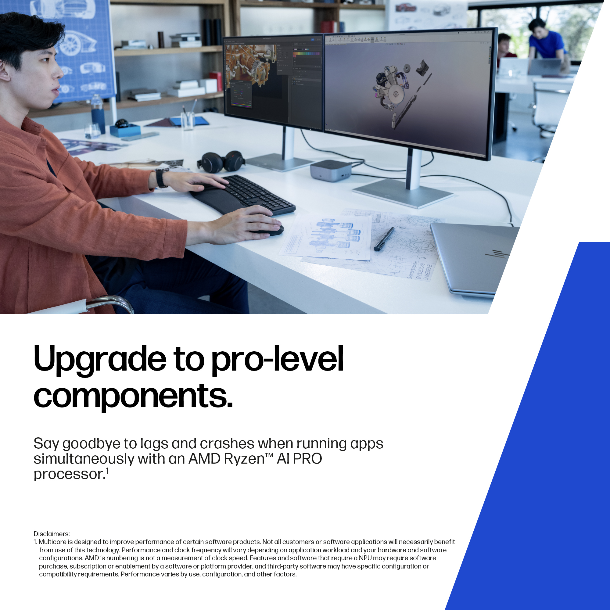 Say goodbye to lags and crashes with fast responsiveness on projects. With up to an AMD Ryzen™ AI 7 PRO 350 processor[3] and large memory configurations,[4] open large files and run pro apps simultaneously for speedy multitasking and increased productivity.