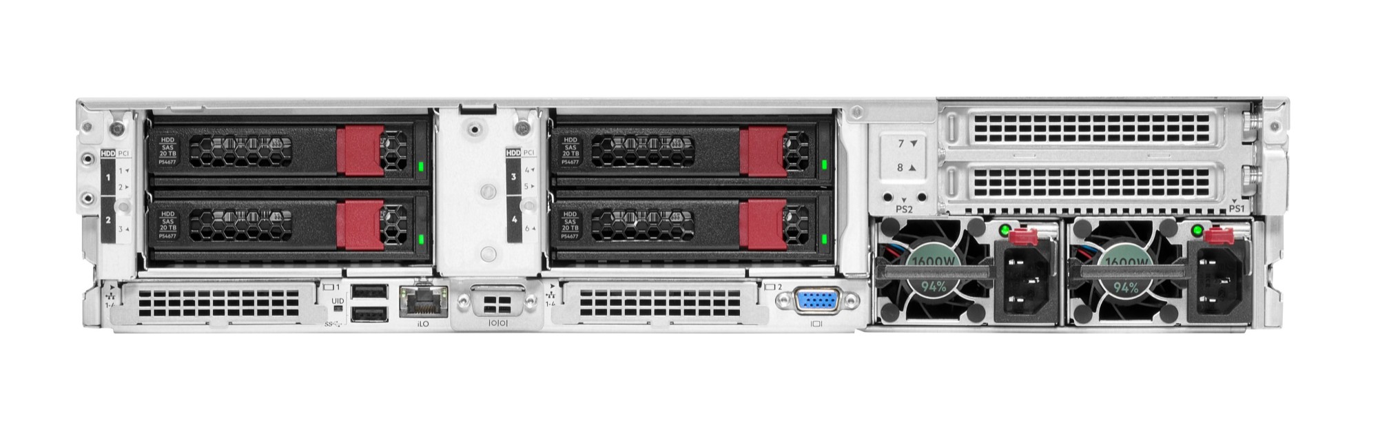 | Supported RAID controllers | 1 to 4 16/32-port with 8 GB cache (consume expansion slots) and optional Intel Virtual RAID on CPU (Intel VROC) |