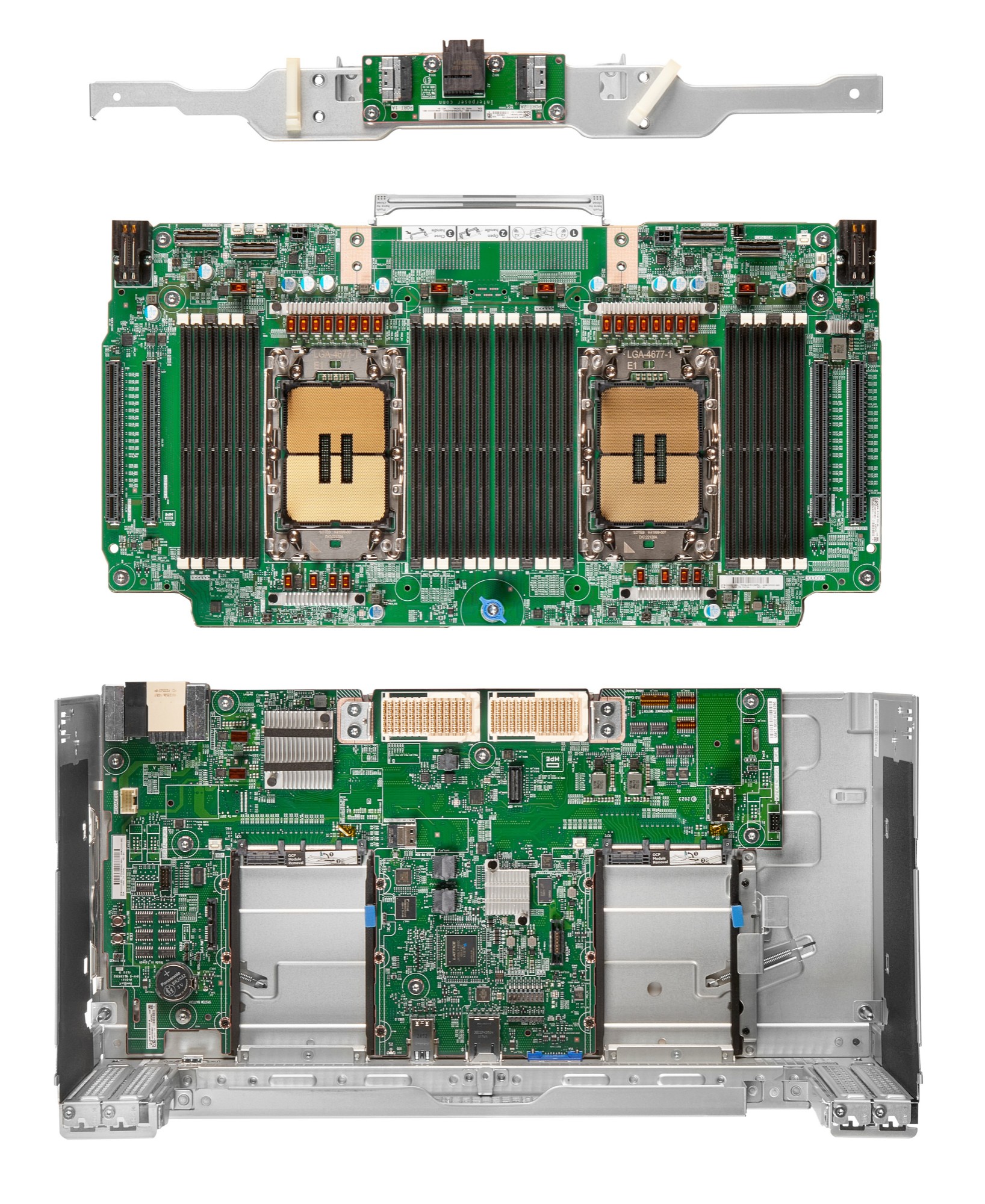 | Supported RAID controllers | 1 or 2 32-port with 8 GB cache (consume expansion slots) and optional Intel Virtual RAID on CPU (Intel VROC) |