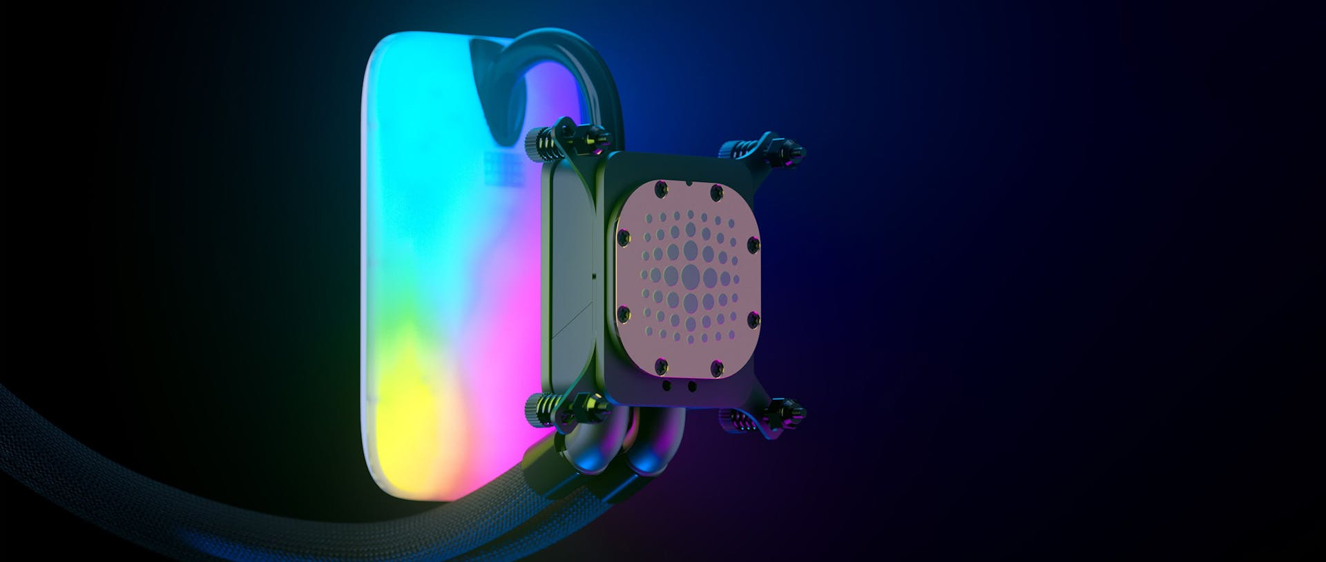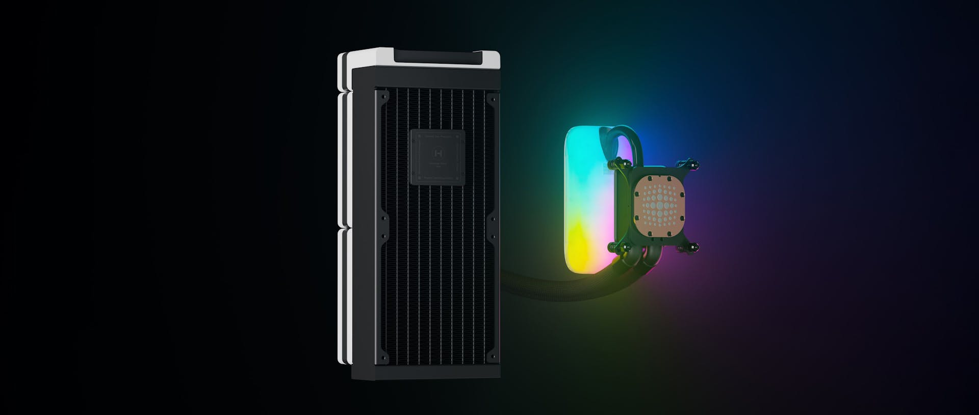 HYTE THICC Q60. Type: Liquid cooling kit, Fan diameter: 12 cm, Noise level (high speed): 47.3 dB, Maximum airflow: 105.8 cfm, Bearing type: Ceramic bearing. Width: 288 mm, Depth: 82 mm, Height: 120 mm. Product colour: Black, White