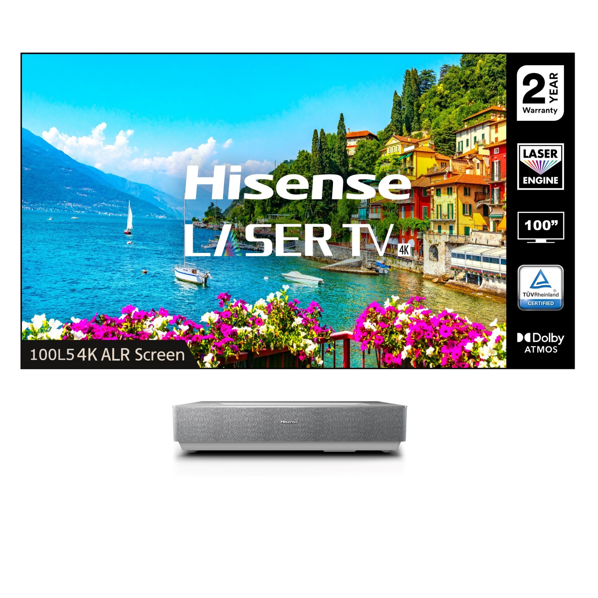 Hisense 100L5H -100" 4K Ultra Short Laser TV supports Dolby Vision HDR /HDR10+/HLG, Dolby Atmos, Alexa & Freeview Play (ALR Screen Included)