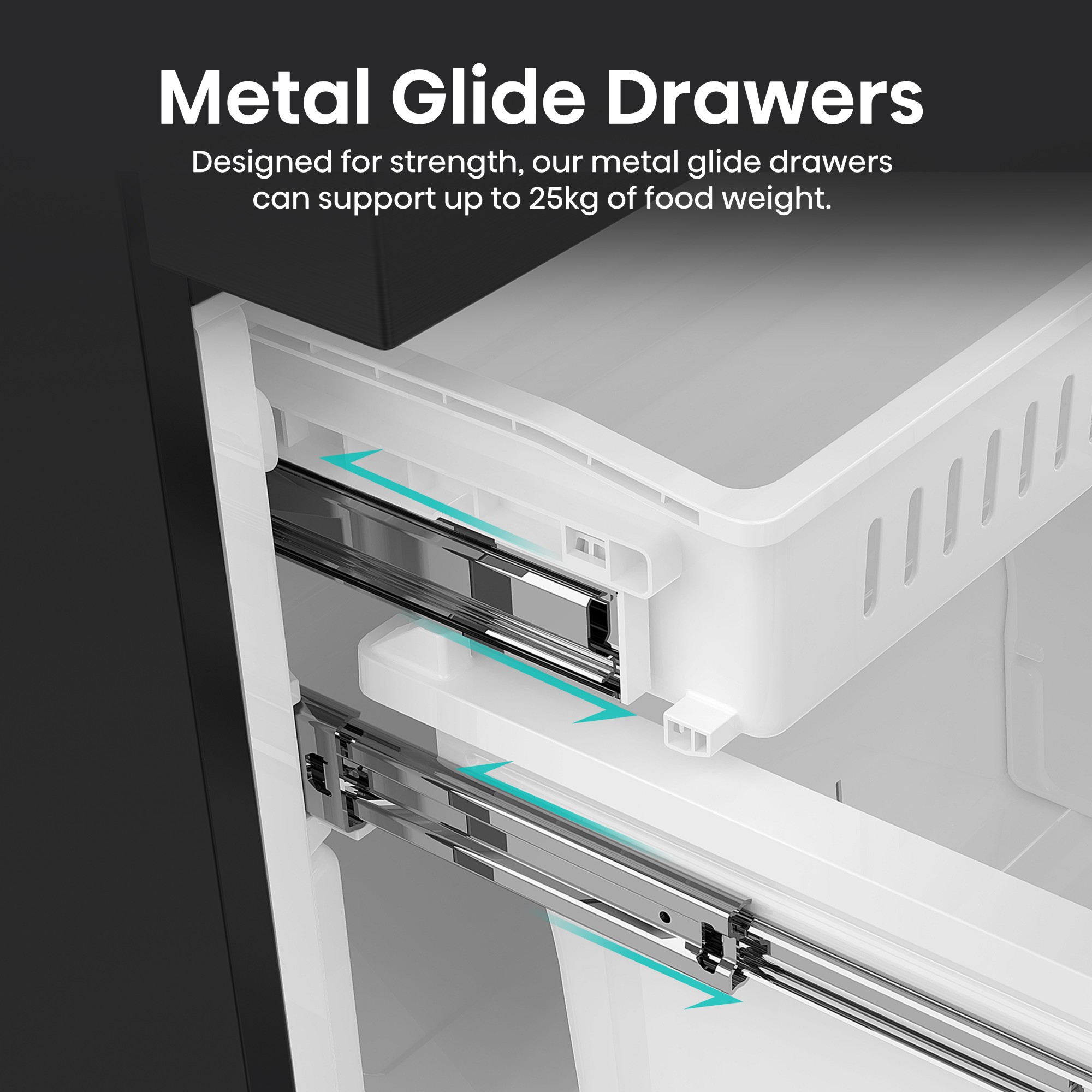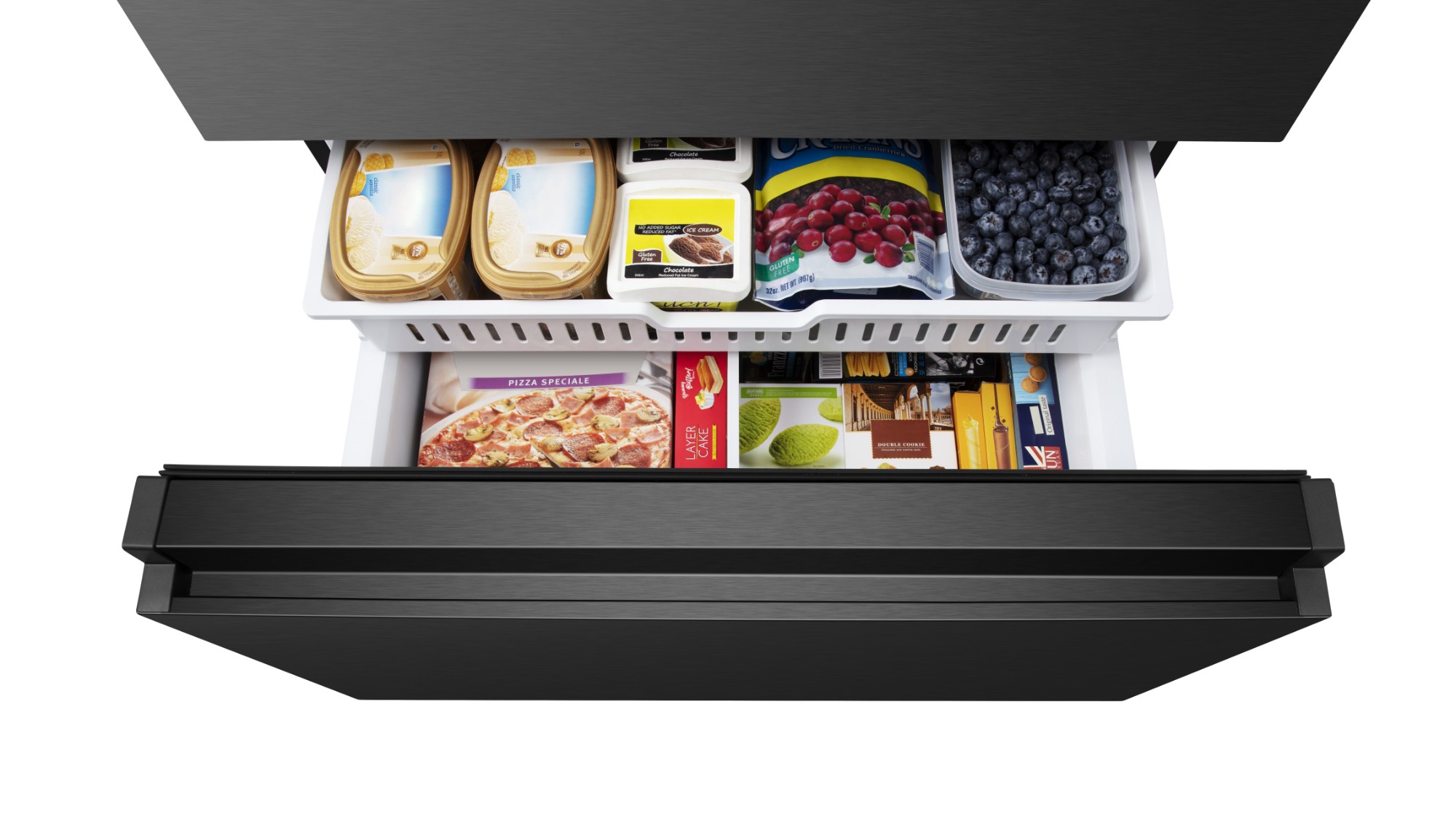 Chocolate puds, mac and cheese, fizzy drinks. This Hisense American fridge freezer can store it all, and a bit more. With plenty of room for 20 bags of fresh ingredients and 12 bags of frozen goodies, why not stock up on delicious burger patties, sausages, and more for a BBQ? There’s even space for dessert. If you fancy a refreshing drink, the non-plumbed water dispenser just needs topping up for a cool glass at any time. Keep your groceries at their best for longer in the My Fresh Choice zone, by flicking on the temperature you need for soft, medium, or deep freezing. Bin the scraper – cold air moves around to keep ice building up too