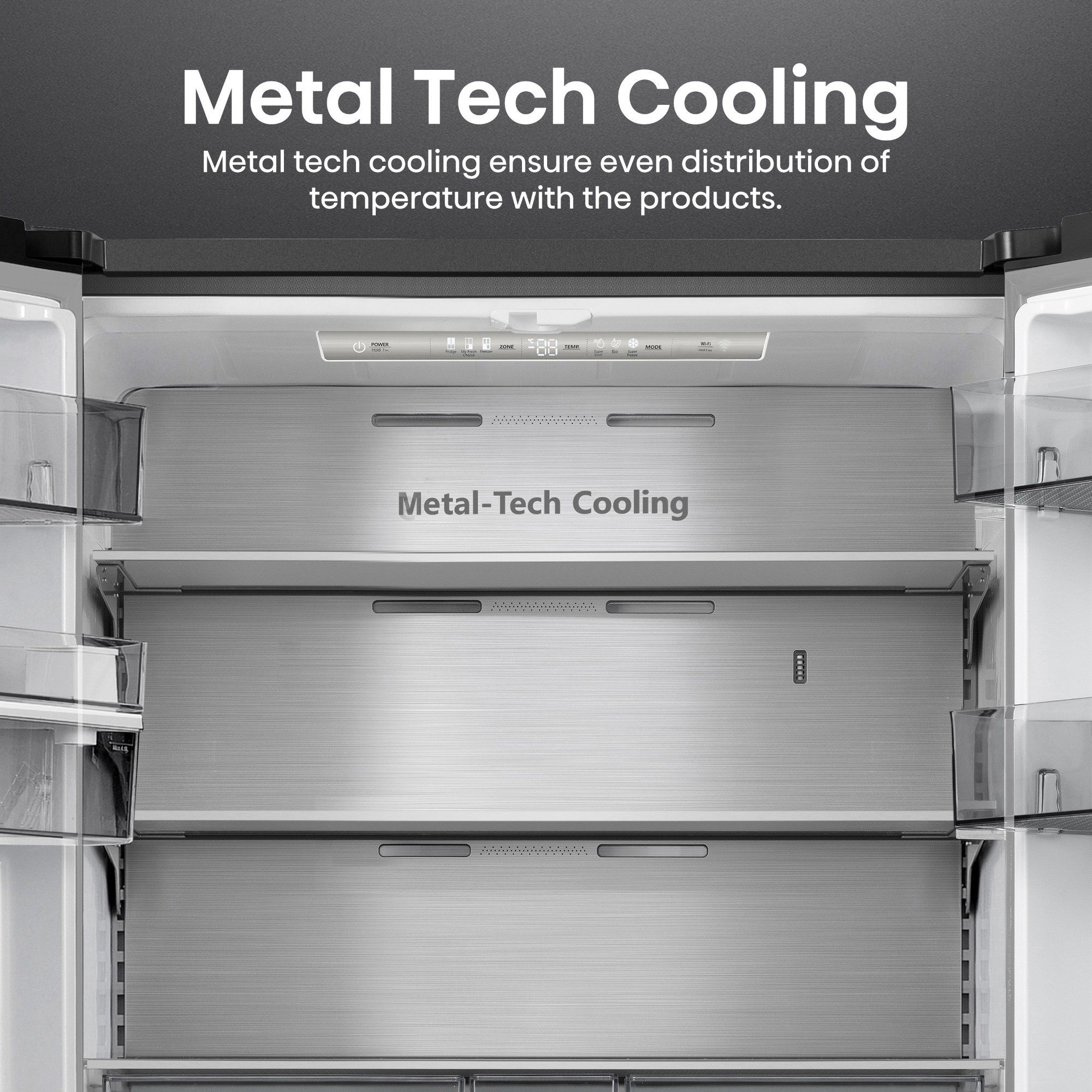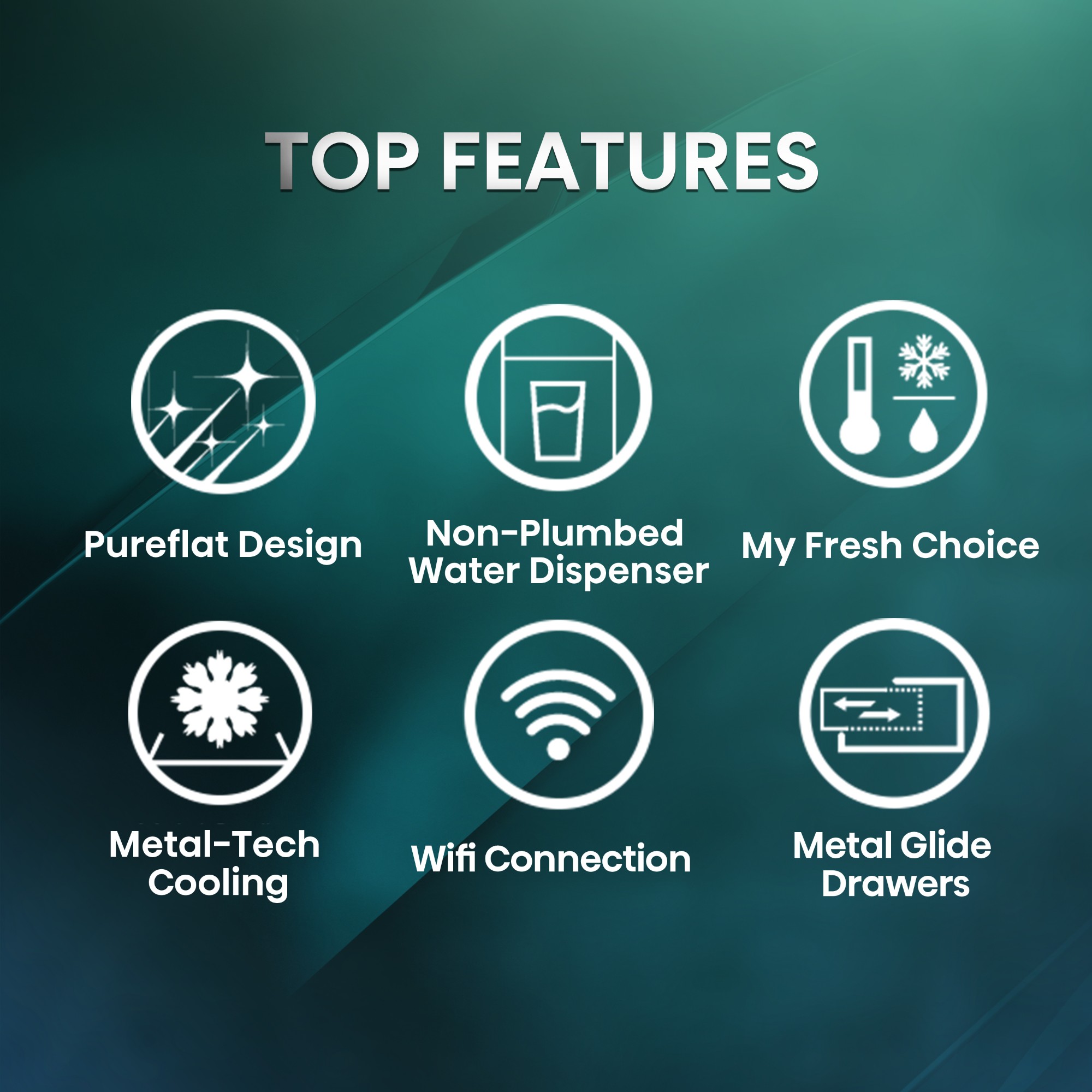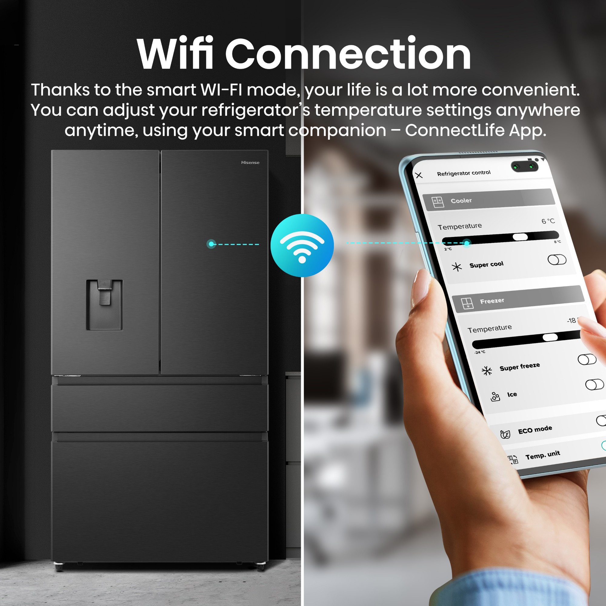 | Hisense technologies (food storage) | ConnectLife, ConnectLife app, LED Display, Metal-Tech Cooling, My Fresh Choice (5°c), PureFlat Design, Recessed Handle, Soft LED Lighting, Total No Frost, Triple Zone Cooling |