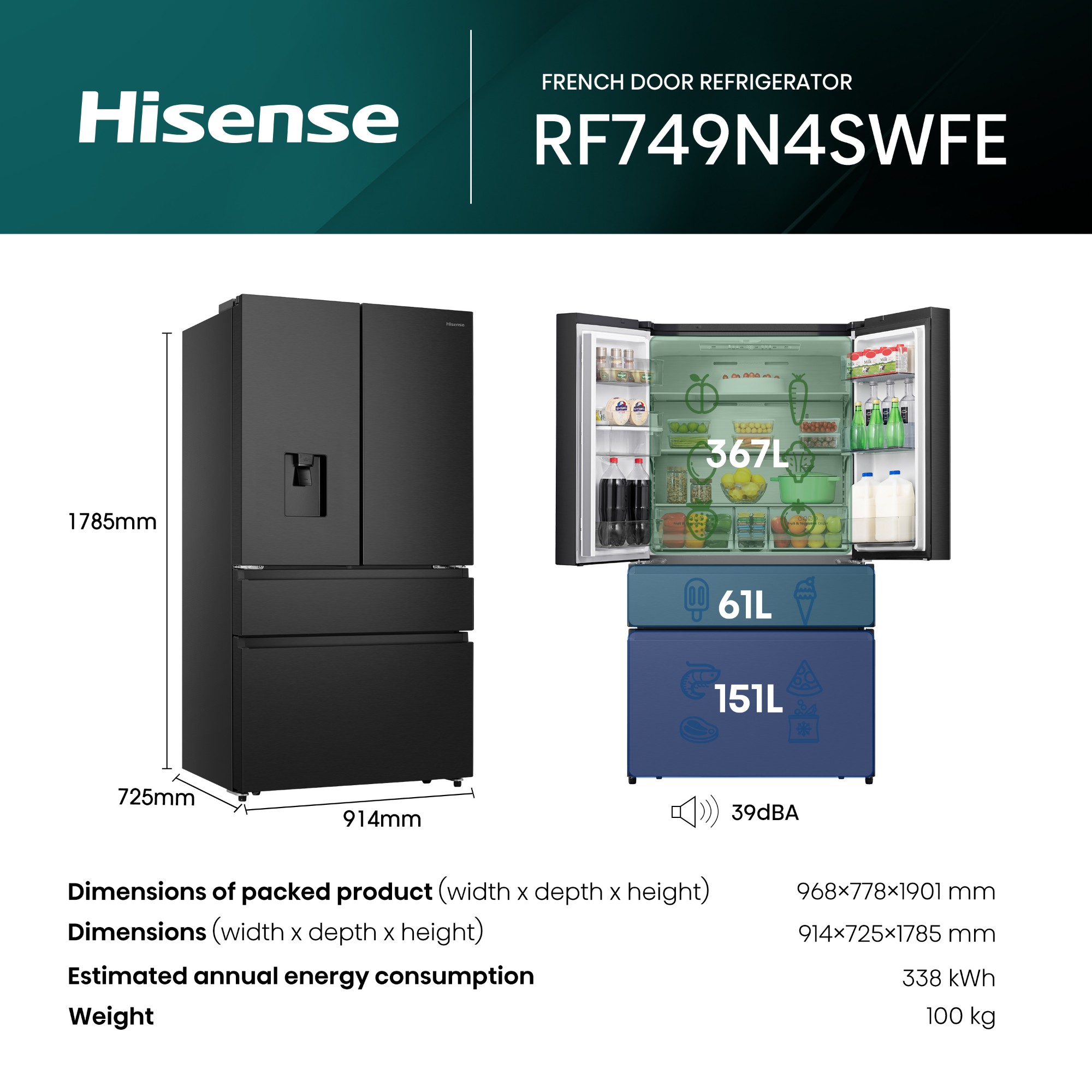 Hisense RF749N4SWFE side-by-side refrigerator Freestanding 579 L E Black
