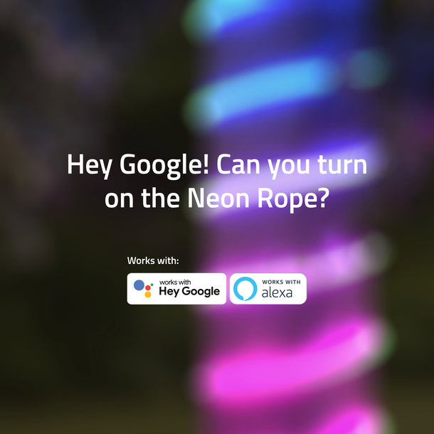 Compatible with Google Assistant, Amazon Alexa, and Siri Shortcuts, the Hombli Smart Neon Rope responds to your voice commands. Simply say the word to change colors, adjust brightness, or turn the lights on and off. The Hombli Smart Bluetooth Bridge is required to enable this functionality.