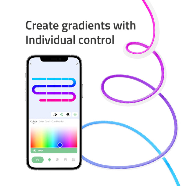 With individual zone control, you can set different colors along the length of the rope for a multi-tone gradient effect. Create a smooth transition of hues or design unique color patterns to match your mood, event, or home décor.