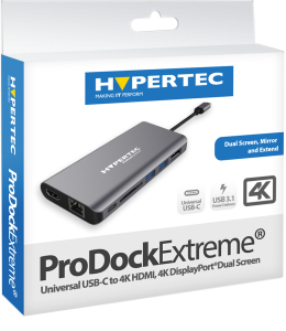 Hypertec ProDock Extreme - Universal USB-C to 4K HDMI, 4K DisplayPort Dual Screen