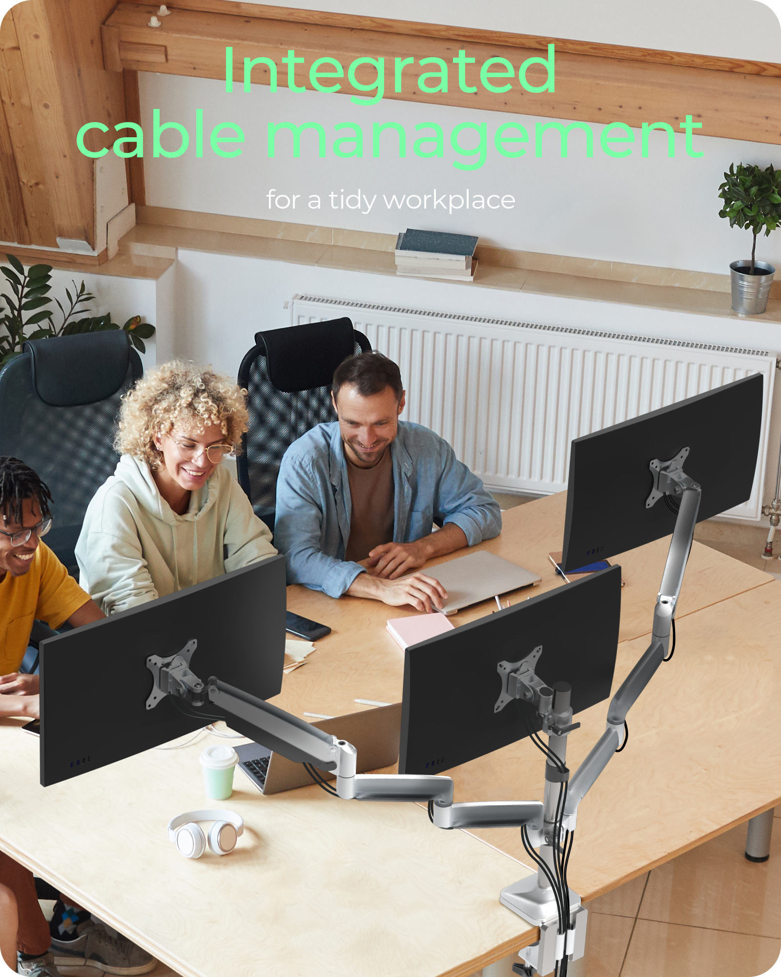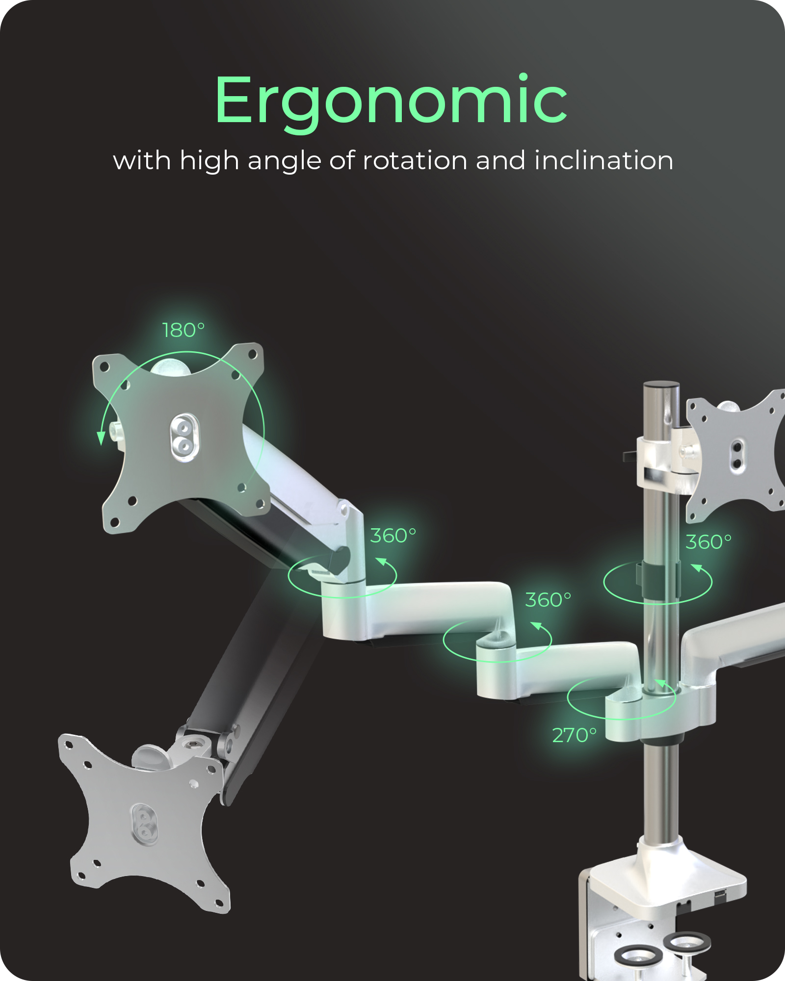 Raise your monitors to an ergonomic eye level to encourage proper sitting posture and help reduce neck pain. Tilt and swivel the monitor to reduce awkward lights and glare from windows or other sources of light.