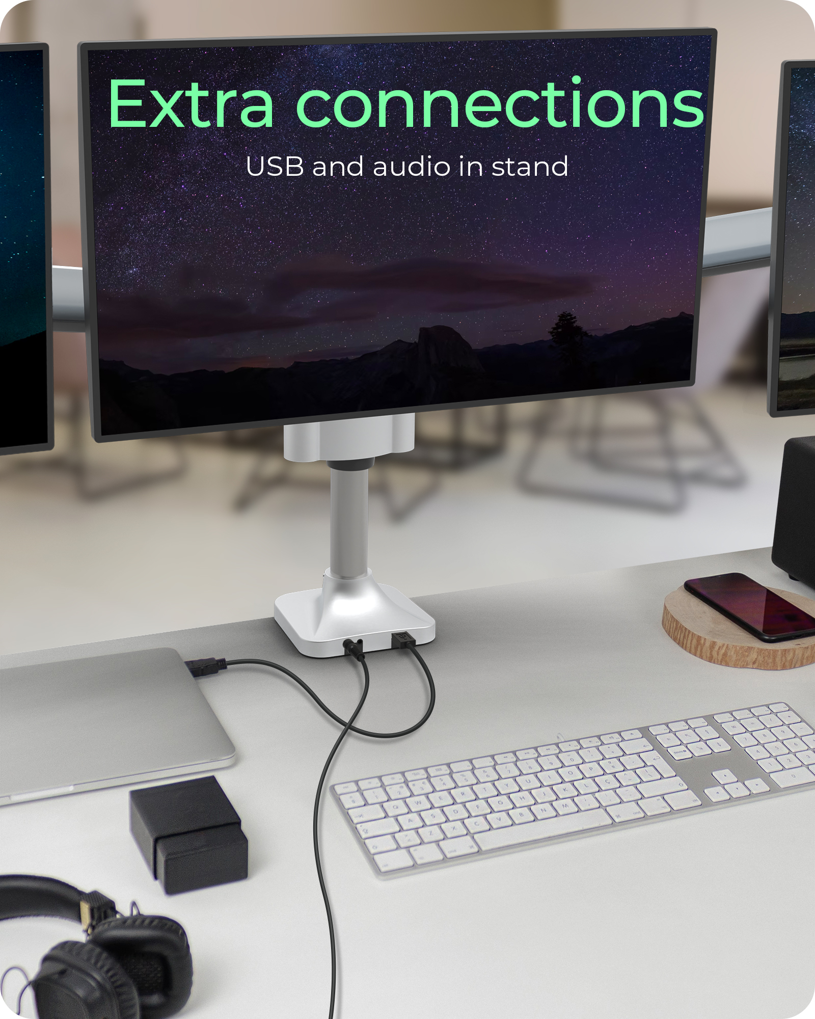 More features built into IB-MS505-TI include an integrated cable management system to guide power and video cables. Additionally, it features integrated USB 3.0 and audio ports in the base of the mount for a better and more convenient connectivity.