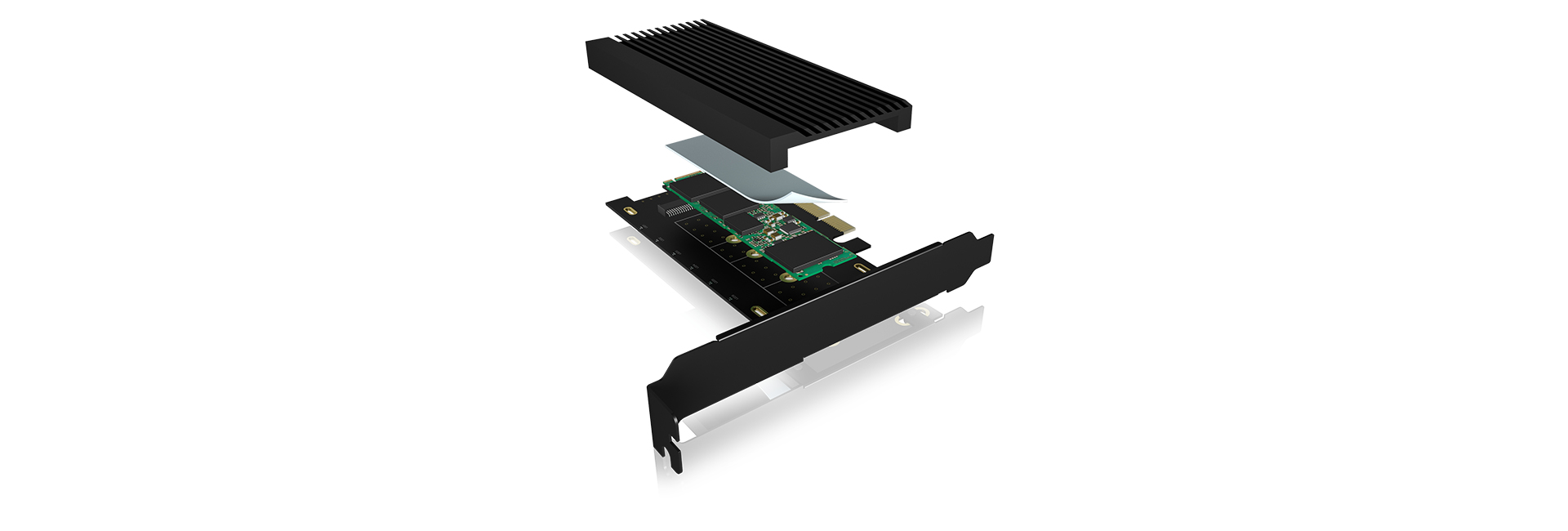 The perfect carrier for your M.2 SSD is called IB-PCI208-HS. In the variants with full or half profile bracket, it integrates perfectly into a free slot of your PC. The inserted M.2 NVMe is to be connected via an M-Key socket.