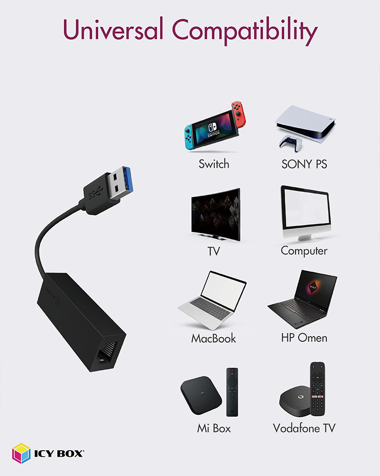 ICY BOX USB 3.0 A-Type to RJ-45 Ethernet port
