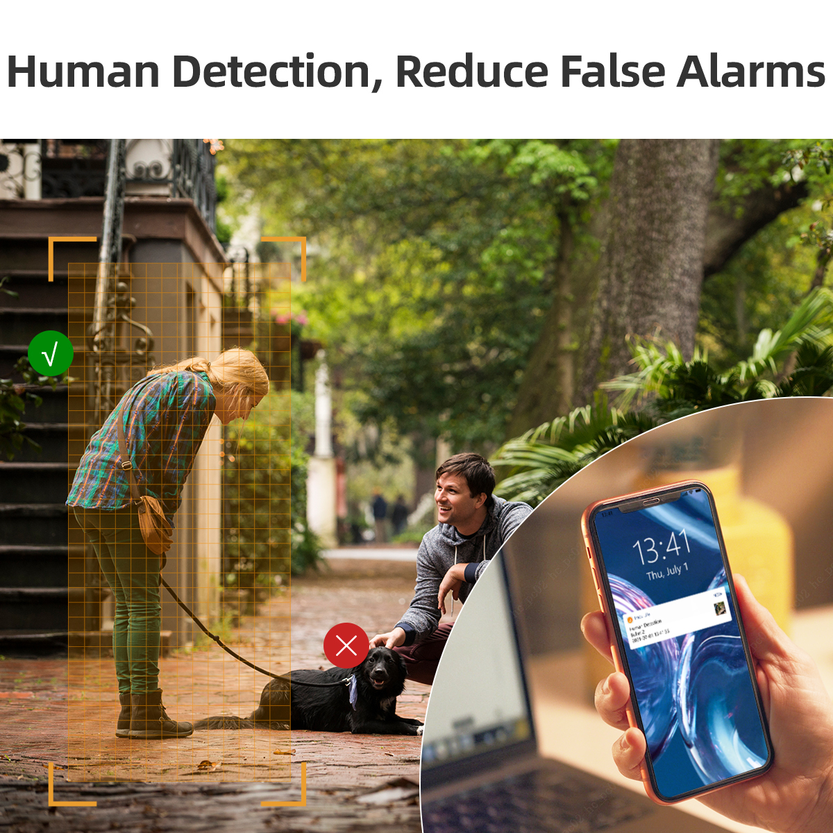 Powerful image processing technology quickly finds and classifies human objects, and immediately sends a notification to your smartphone. Monitor what matters without receiving annoying false alerts.