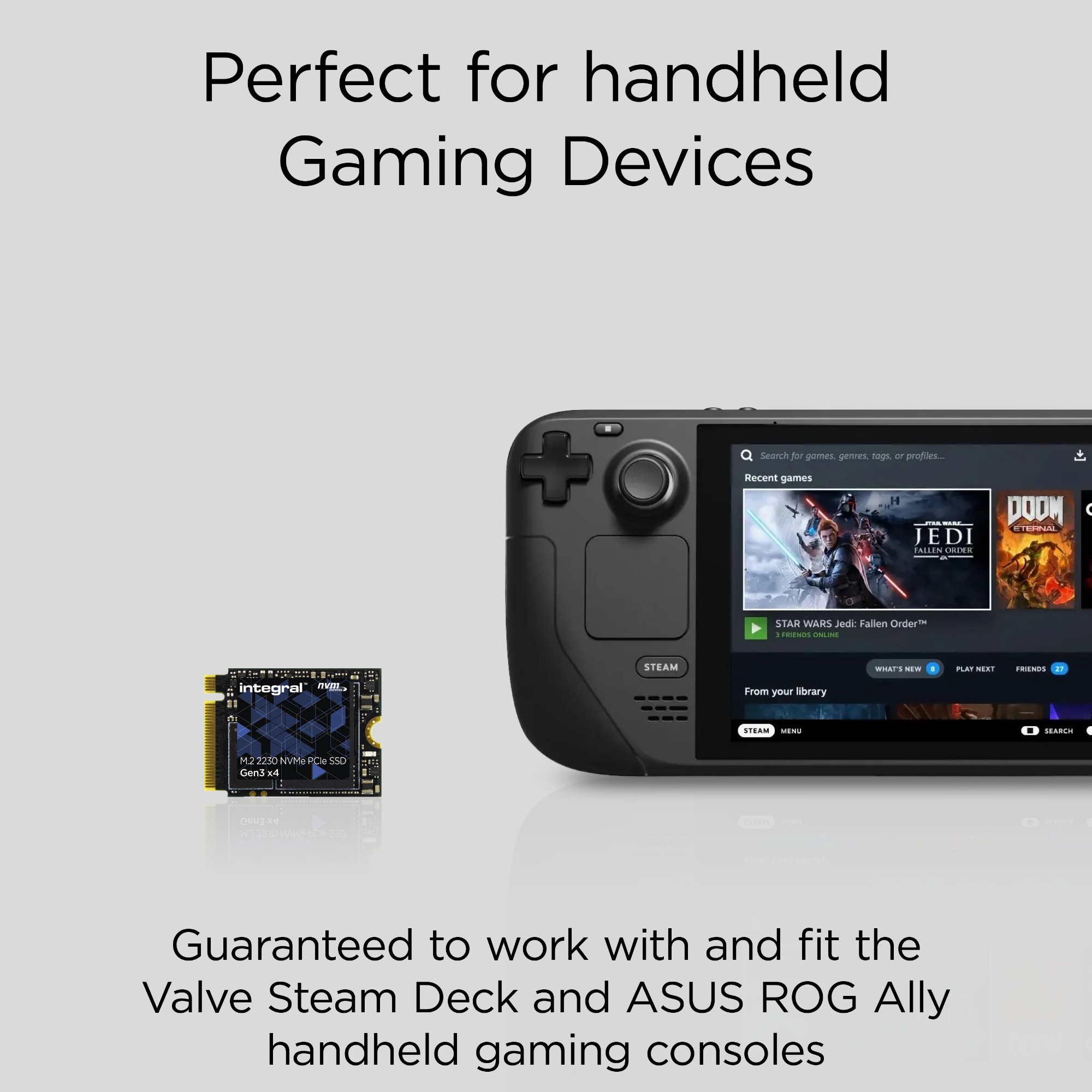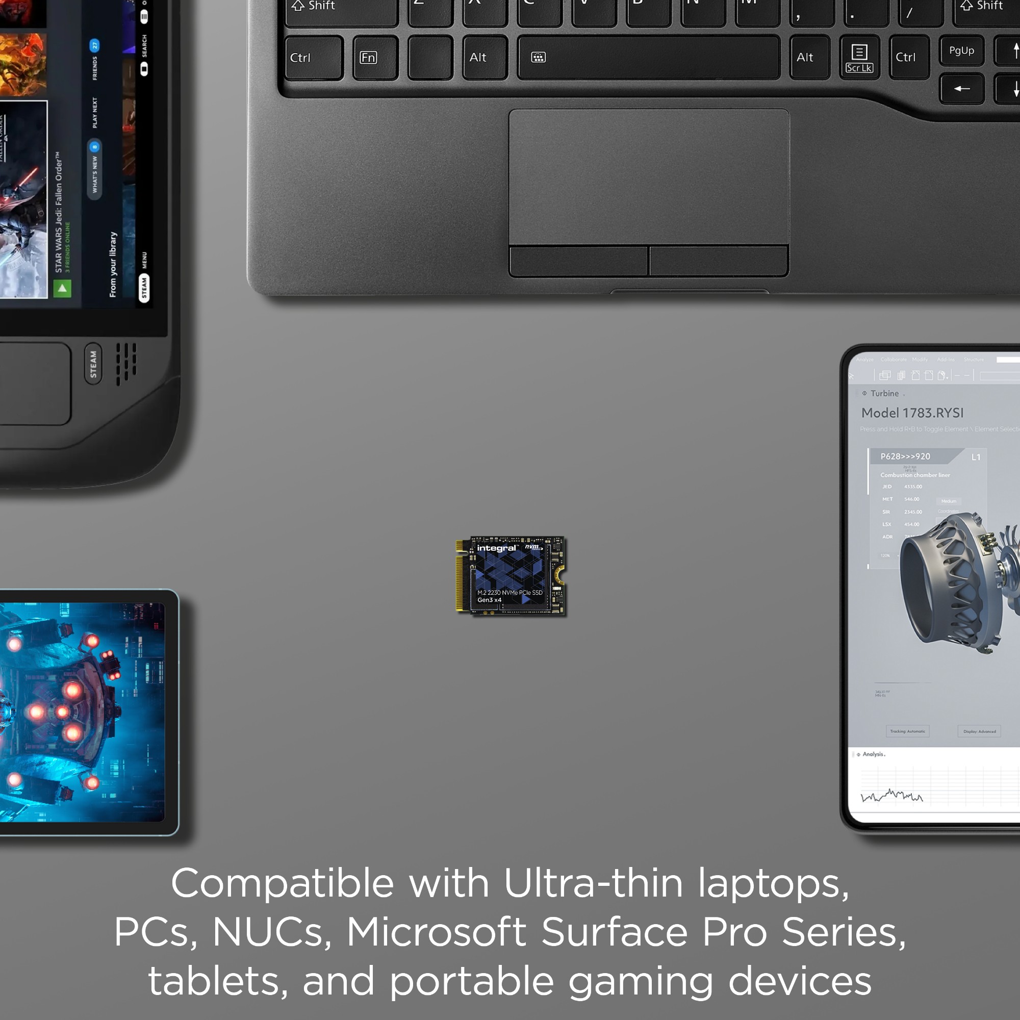 The Integral Memory M.2 2230 NVMe Gen3 x4 PCIe SSD’s compact 2230 form factor is designed to upgrade even the most space limited devices including the Valve Steam Deck, ASUS ROG Ally, Microsoft Surface Pro and other ultra-thin tablets and laptops, achieving impressive read speeds of up to 3400MB/s, and write speeds reaching 3000MB/s. Drastically reducing operating system boot times with significantly lower power consumption than traditional hard disk drives (HDD), these latest NVMe Gen3 2230 SSDs are the ideal solution for supercharging your handheld games console, as well as for upgrading work and home PCs and laptops. Coupled with the latest in error detection and correction and end-to-end data protection the 2230 Gen3 delivers best in class performance.