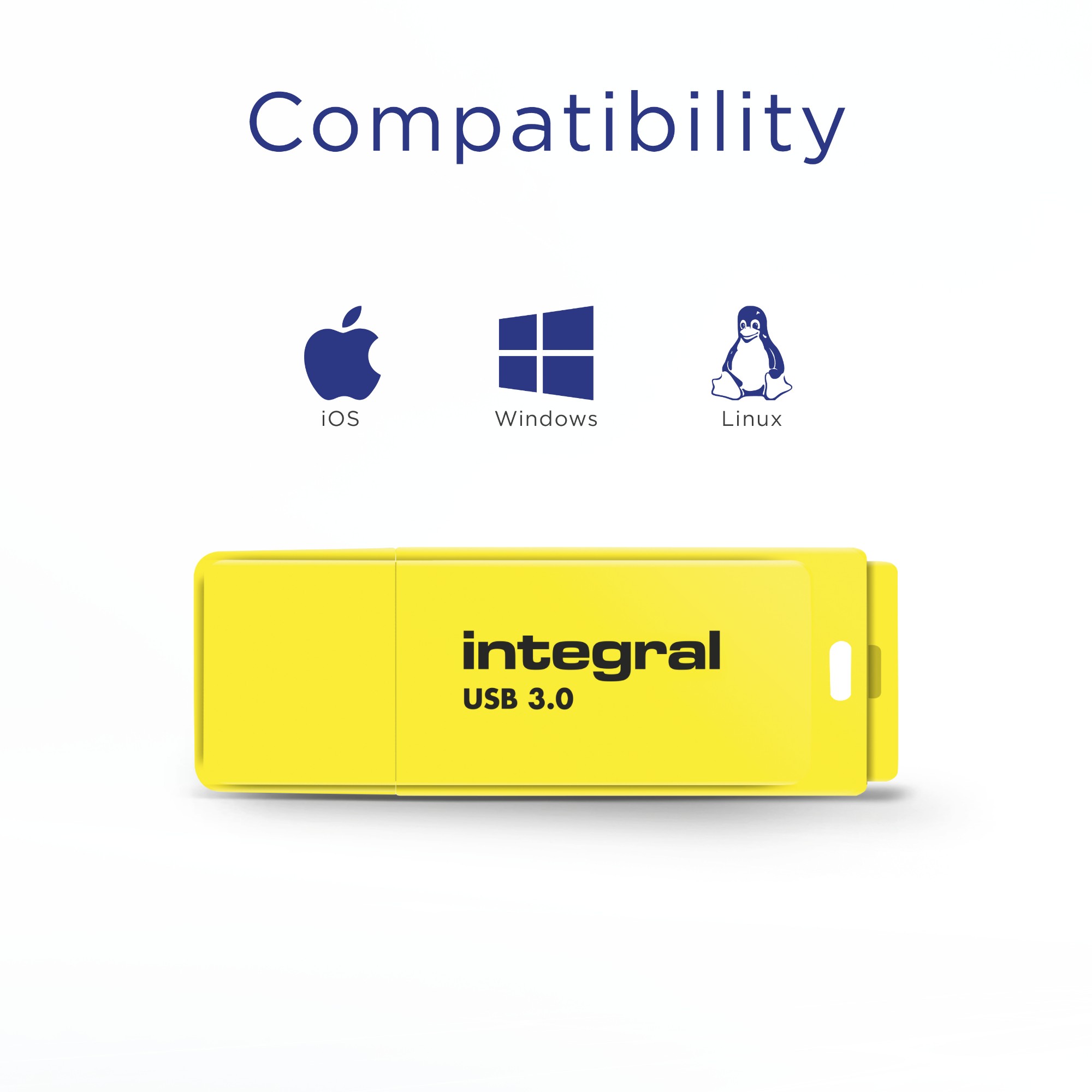 Integral 32GB USB3.0 DRIVE NEON YELLOW UP TO R-100 W-30 MBS
