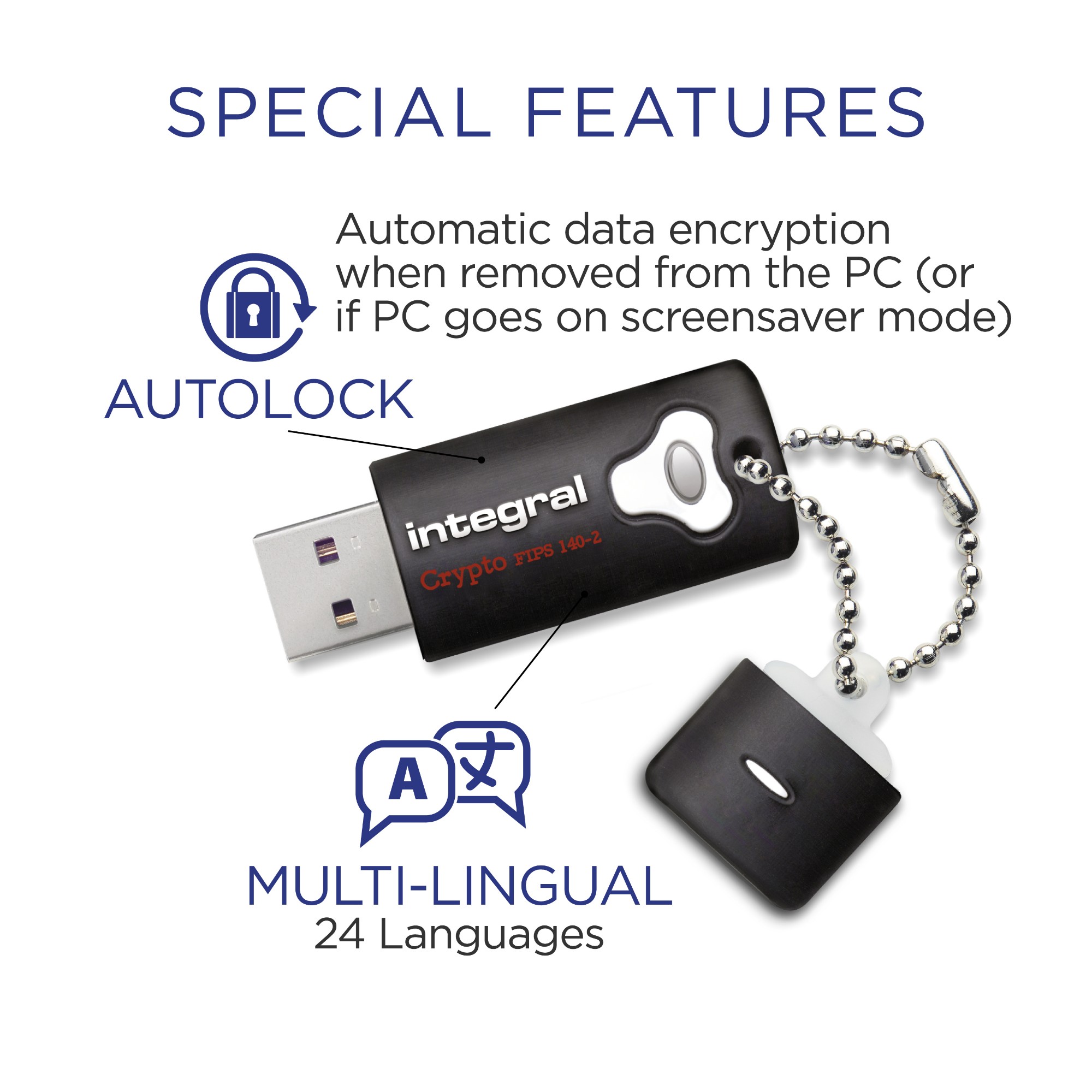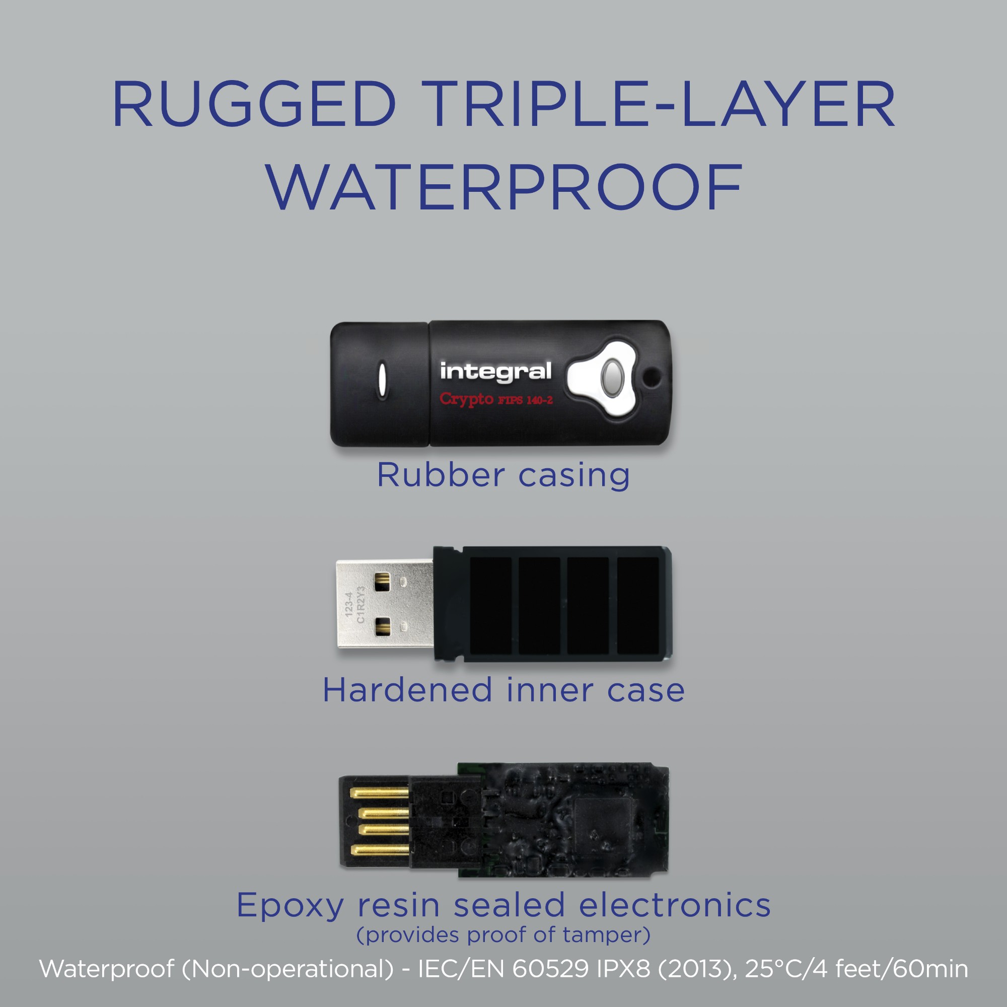 The Integral Crypto FIPS 140-2 Encrypted USB 3.0 Flash Drive offers the data security of military grade 256-bit hardware encryption and tamper-proof circuitry as well as the environmental resistance of a triple-layer case design, ensuring your sensitive data is completely safe and can be taken with you wherever you go.