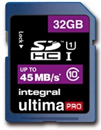 The fastest SDHC memory card from Integral Memory - choose UltimaPro 45MB/s SDHC memory cards for incredible speed. The perfect memory card for a professional photographer or camera enthusiast, designed to be used where fast memory cards are crucial; to capture high resolution images and to shoot Full HD video.