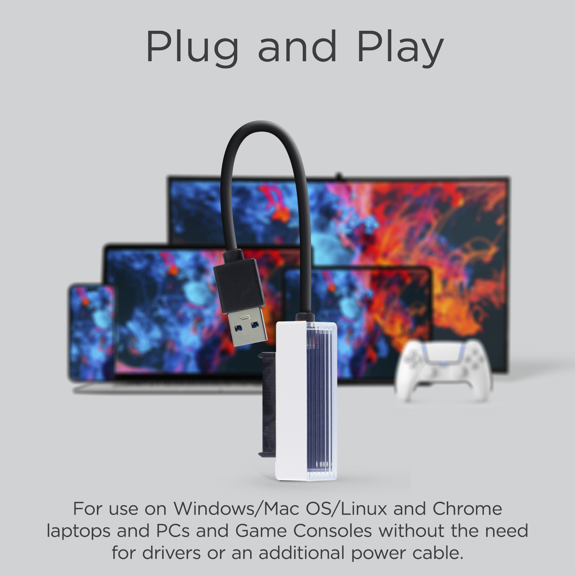 Quickly and easily connect your SATA drive to your other devices with this USB 3.0 to 2.5” SATA III Converter. Compatible with Thunderbolt 3, you can instantly connect to MacOS, as well as Windows, Linux, Chrome, and Android operating systems, games consoles and more. Allowing for straightforward expansion of your device storage, the adapter is suitable for use with most SATA I/II/III 2.5” HDD and SSD drives