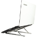 The NBS-200 is a compact notebook stand made of aluminum, which is suitable for all common notebooks in 11-15.6". It can be adjusted in height in 7 steps (55-155mm) and contributes passively due to its open frame design to the cooling of the notebook.