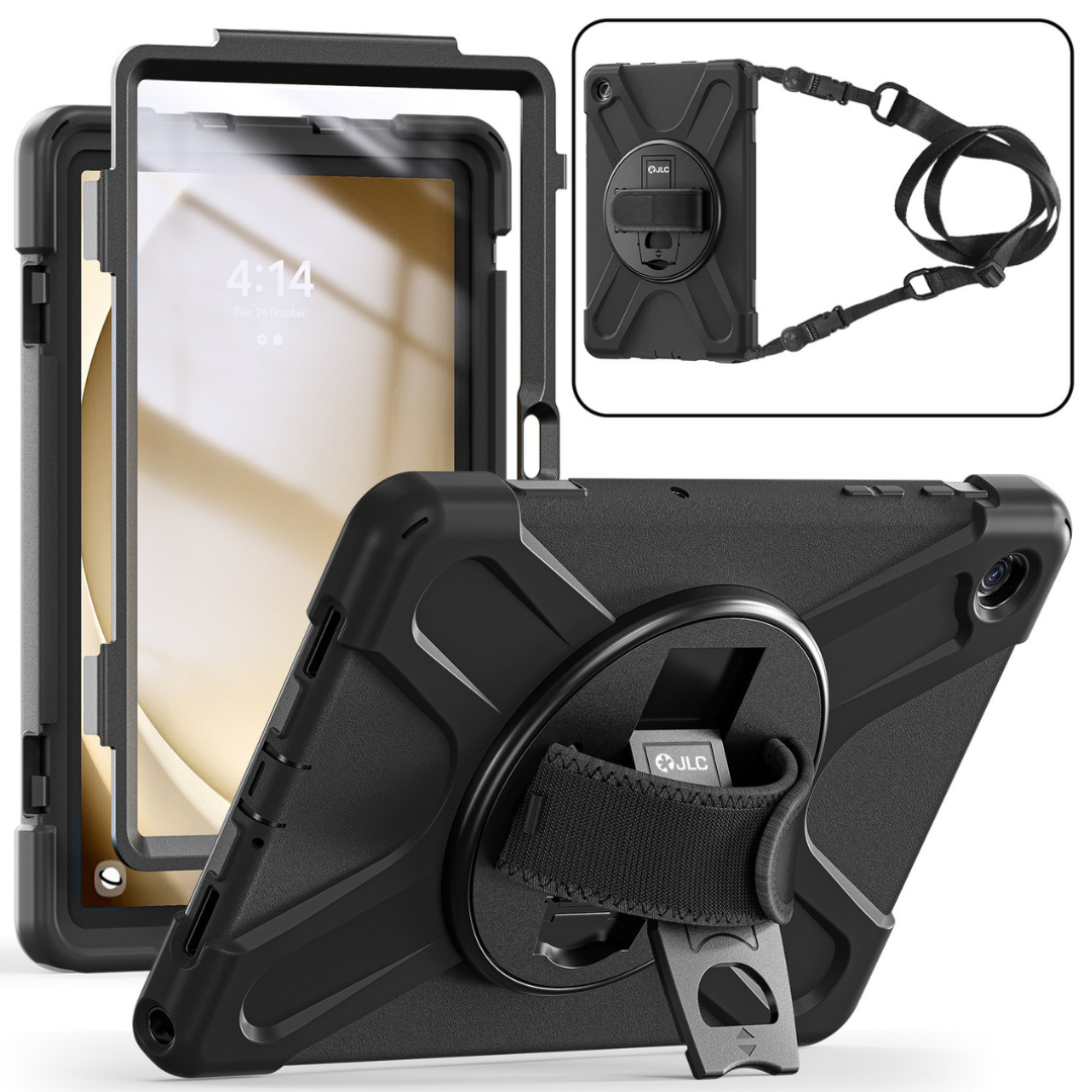The JLC Samsung Tab A9 Plus Wolverine Case is designed for durability and convenience, offering rugged protection with its 3-piece polycarbonate and flexible silicone construction, which prevents accidental damage. It features precise cut-outs for all ports and functions, providing easy access to your tablet’s features. The 360-degree rotatable kickstand and adjustable hand strap allow for a multi-angle user experience, while the detachable and adjustable 5ft shoulder strap gives you the flexibility to carry your device vertically or horizontally. Available with or without a built-in screen protector, the case also includes an integrated stylus holder (model dependent) for added functionality.