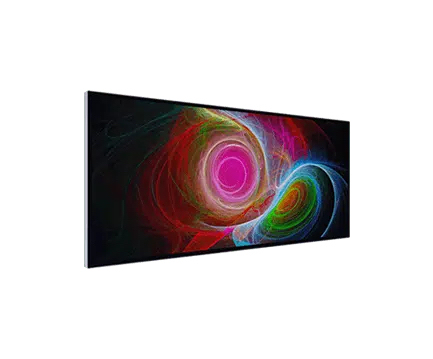 Pana’s 21:9 ultra-wide 5K resolution brings a refreshing form factor to the conventional display market. Our 8-foot wide Pana 105 canvas optimizes team productivity allowing for improved interaction and work place collaboration. The market most receptive to this format are enterprise and
