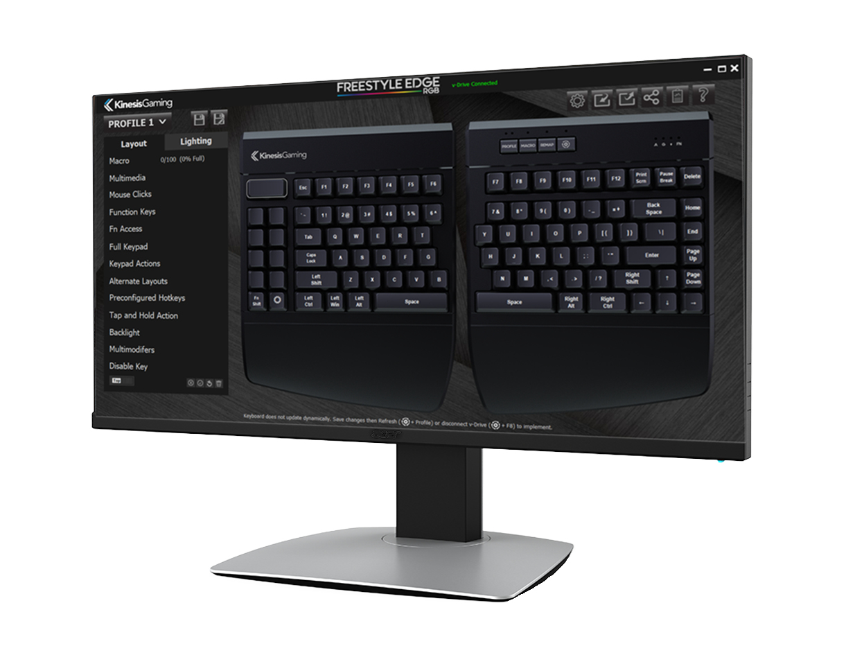 Move the right module out of the way for one-handed FPS play or split the modules apart place your HOTAS or stream mic between the two halves for incredible convenience. For maximum typing comfort, simply split the two modules to shoulder-width and angle them slightly to achieve a neutral wrist angle. There is no wrong way to set up the Freestyle Edge, just dial in your favorite configuration for the ultimate desktop freedom