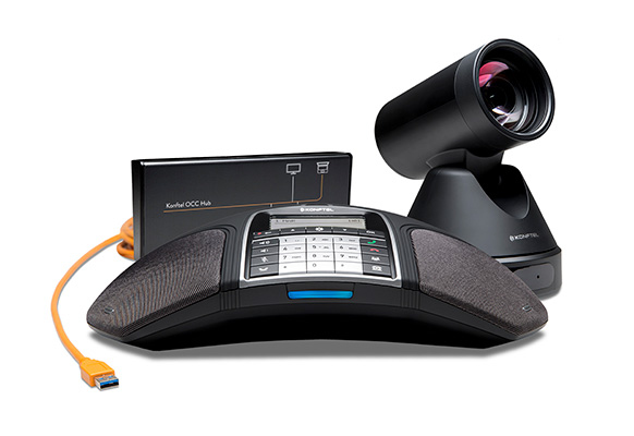 Konftel C50300 Hybrid is a flexible range of premium video collaboration solutions for medium and large meeting rooms, combining the Konftel Cam50 PTZ conference camera and a Konftel 300 model with OmniSound® audio quality. The Konftel OCC Hub brings the whole kit together, so a single USB cable is all you need to connect the camera, the conference phone and the room’s screen to the collaboration app on your laptop. The hybrid concept also delivers the freedom to welcome participants via regular phone calls.