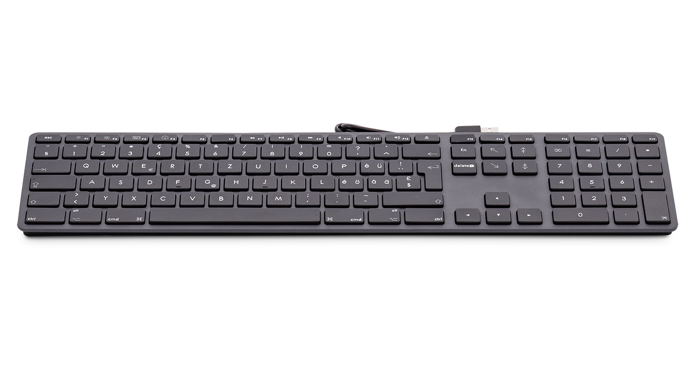 This robust USB keyboard in 3-zone layout with 110 keys (ISO) and a cover made of anodized aluminum has a numeric keypad which also has the "=" sign. This allows you to work quickly with numbers and in tables. The keys are laser engraved and therefore feel pleasant on the fingertips. They have a traditional key stroke. Even longer work is easy thanks to the high reactivity and precision. The elegant design integrates the keyboard seamlessly into any Mac environment.