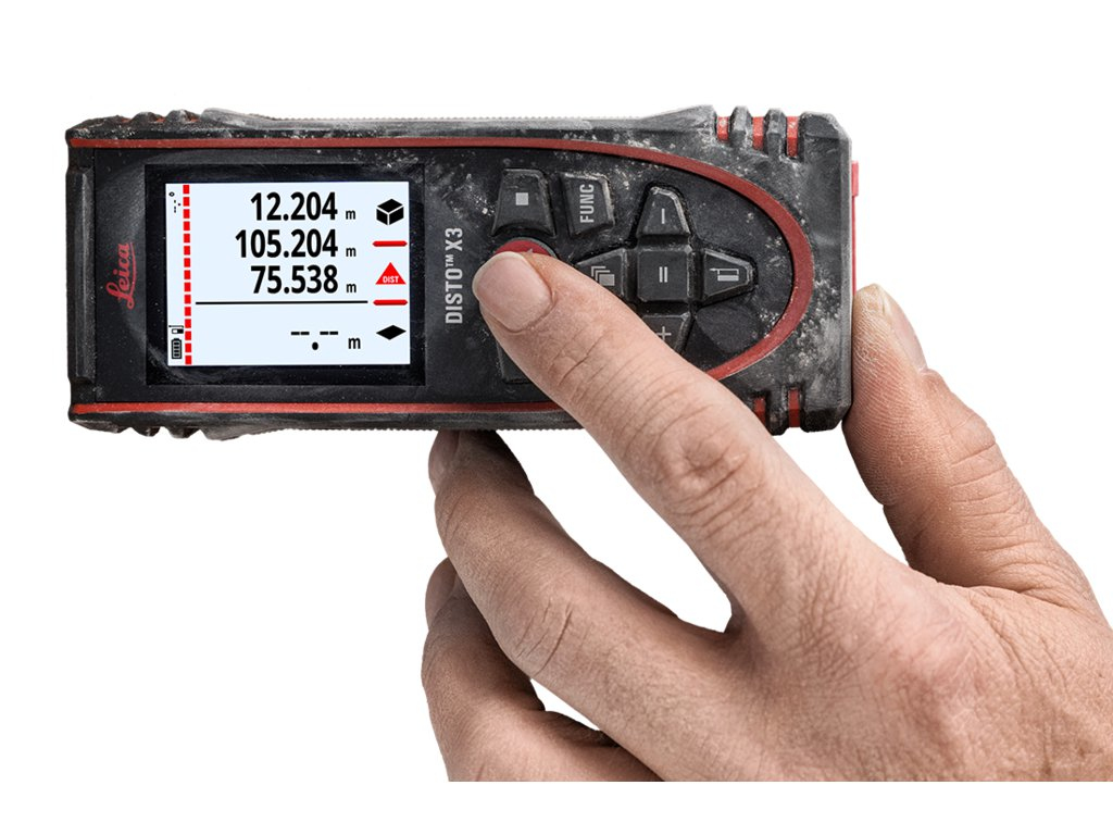 The Leica DISTO™ X3 is perfect for tough construction site conditions. It is drop-tested up to 2 m in height, water jet and dust protected to IP 65 standards.