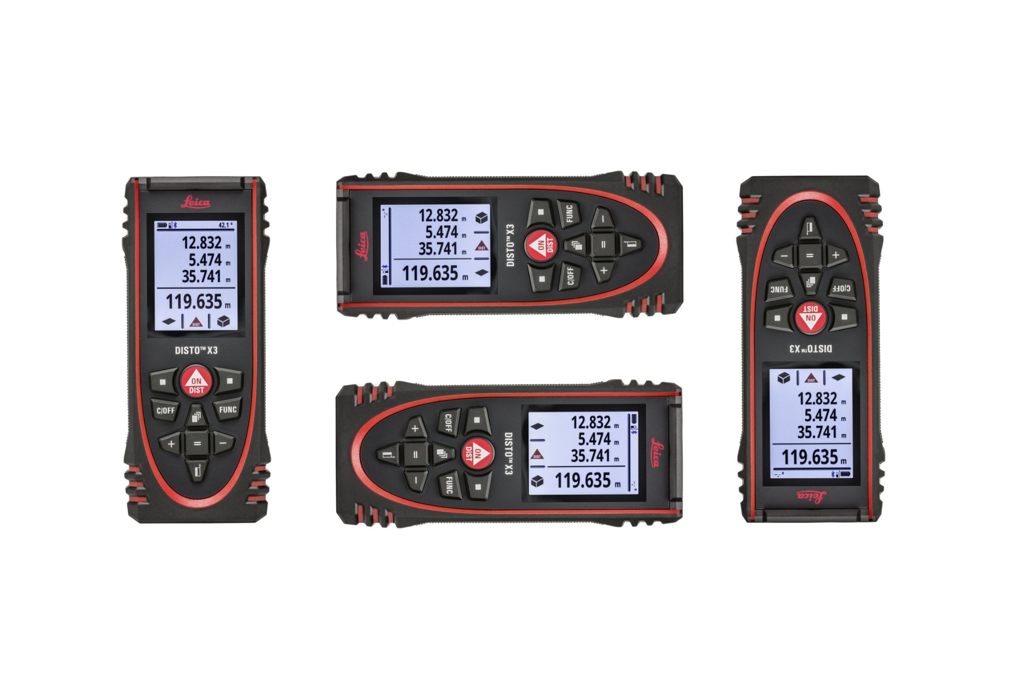 The Leica DISTO™ X3 display automatically rotates in line with the measurement direction. This means you can always read your measurement results from any angle.