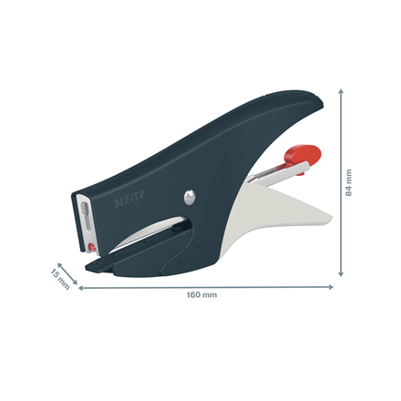 Leitz 56450089. Stapling capacity: 15 sheets, Product colour: Black, Clinch type: Flat clinch. Width: 15 mm, Depth: 160 mm, Height: 84 mm. Package type: Box. Number of staples included: 1 pc(s)