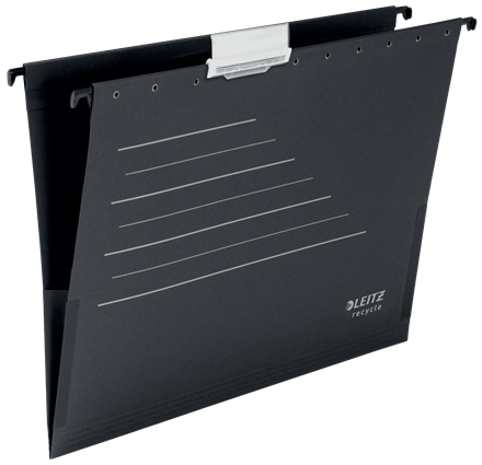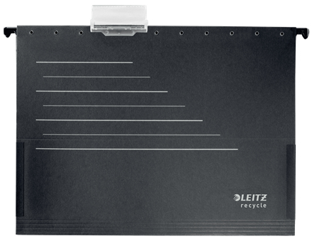 Eye-catching, premium quality Suspension Pocket with v-base suitable for A4. 100 % recycled card, 100% recyclable and with Blue Angel environmental certification. Maximise storage space with vertical filing to keep papers tidy and accessible. The strong durable hanging bars will withstand heavy usage and the labelholder included helps with organising and identifiying contents. This robust hanging pocket perfectly complements other products from the Leitz Recycle range and is made to last. Modern and contemporary green stationery that will look great at home and in the office. With the eco friendly Recycle range from Leitz you can both improve your office environment – and the environment of our planet.
