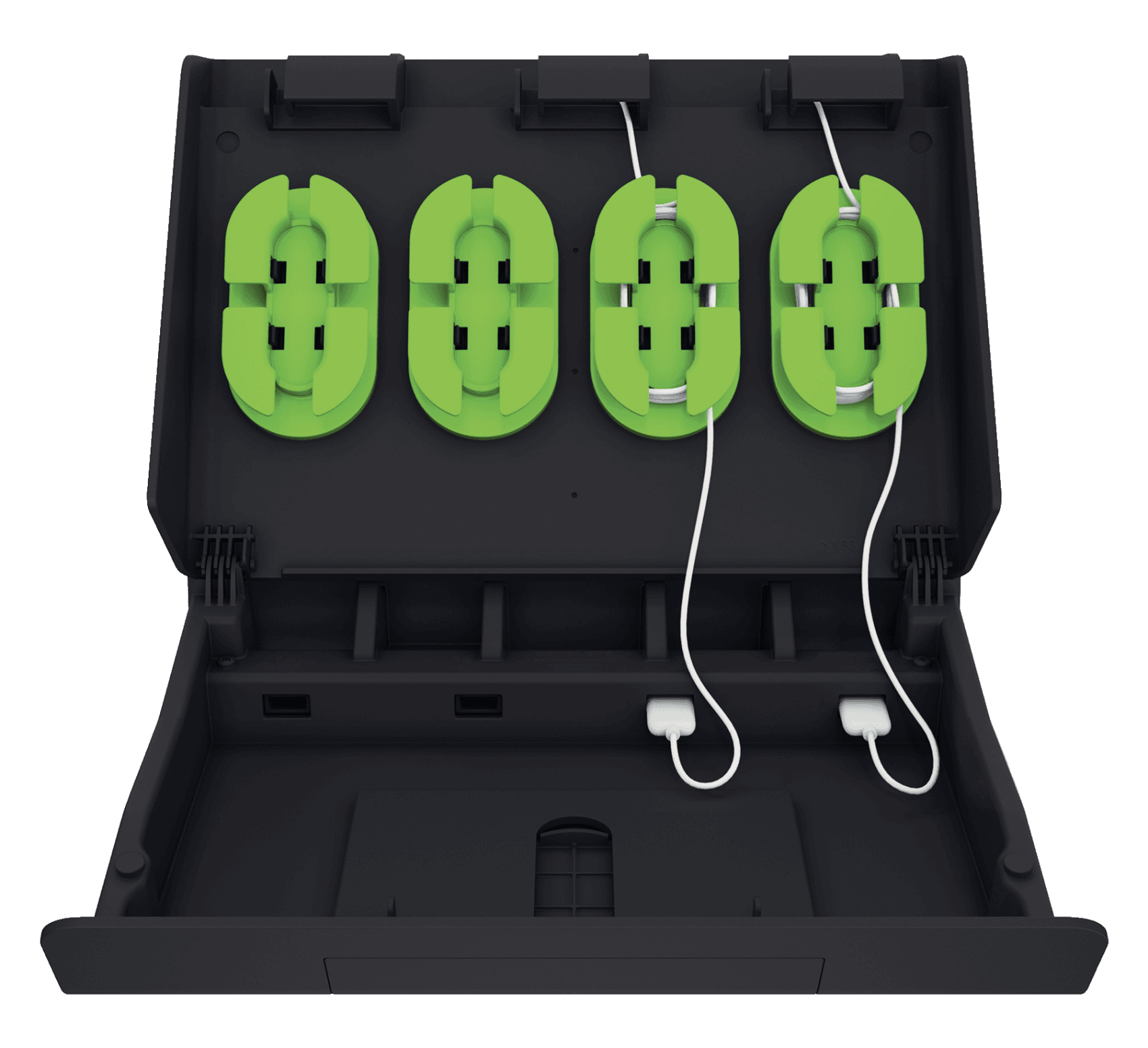 Multicharger for simultaneously powering tablets, smartphones and other equipment with full speed. Includes 3 Micro USB cables and 4 independent spools for convenient cable management, even on the move. Make your mobile devices complete!