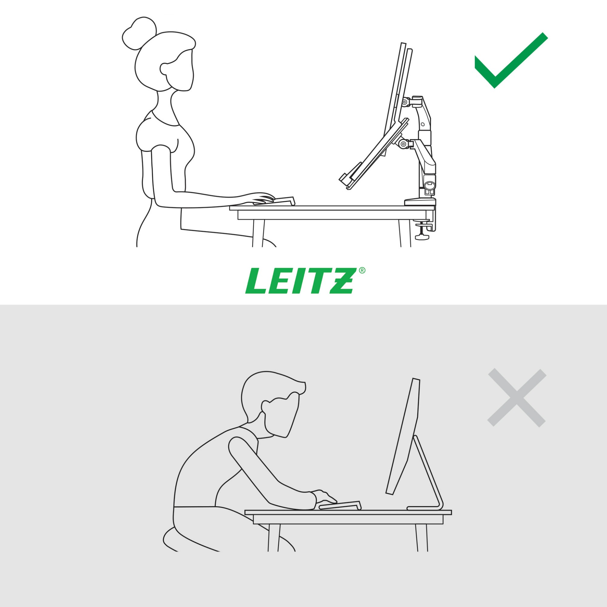 The IGR (monitor arm only) and TÜV certified Leitz Space Saving Dual Monitor and Laptop Arm has a positive impact on posture, promotes proper eye alignment and supports neck and shoulder comfort when the height of the monitor and laptop are adjusted correctly, and as recommended, to the ideal ergonomic position. The monitor and laptop stand remains stable at all heights and angles and can be easily switched between landscape and portrait mode. It's design is ideal for where space is limited and it will free up valuable desktop space thanks to its ultra versatile arms that can effortlessly fold flat, tilt and maneuver in any direction with just one hand. Ergonomically designed to promote wellness and increase productivity.