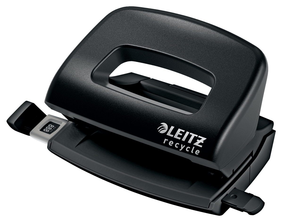 Eye-catching, premium handy sized, sturdy mini hole punch made with post consumer recycled plastic for regular use in the office, at home or on the move. 100% recyclable as it can be completely dismantled in the different material types. With patented grip zone for comfort. Ultra sharp stamps reduce punching effort. Perfect for punching in-hand. This ergonomic and handy paper punch perfectly complements other products from the Leitz Recycle range and is made to last. Modern and contemporary green stationery that will look great at home and in the office. With the eco friendly Recycle range from Leitz you can both improve your office environment – and the environment of our planet.