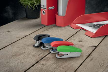 Eye-catching, premium reliable small stapler made with post consumer recycled plastic for everyday office use.100% recyclable as it can be completely dismantled in the different material types. Patented Direct Impact Technology and Leitz Power Performance staples P3 (24/6, 26/6) ensure perfect stapling every time. This reliable small stapler perfectly complements other products from the Leitz Recycle range and is made to last. Modern and contemporary green stationery that will look great at home and in the office. With the eco friendly Recycle range from Leitz you can both improve your office environment – and the environment of our planet.