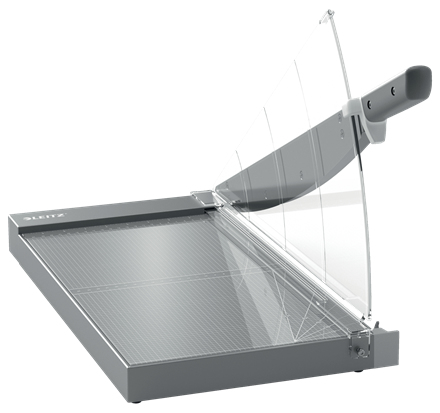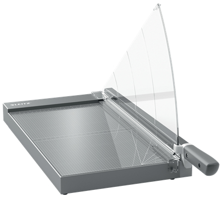 The Leitz Precision Office Pro A3 Paper Cutter is perfect for general office use to cut through paper, labels, film, photos, laminates, card and mount board. This powerful and robust commercial paper guillotine will effortlessly cut up to 25 sheets of A3 paper (80gsm) with speed and precision. Features unique EdgeGlow light technology which illuminates the cutting edge for greater visibility and maximum precision. The clear, manual paper clamp keeps the paper secure, while the ergonomic handle ensures comfortable and easy cutting. It is quick and easy to align the paper with the simple guidelines on the smooth, glass work surface. The secure blade safety guard gives total protection and the safety latch keeps the blade locked closed while not in use. With a high quality stainless steel blade, sturdy work surface and an extended 5 year guarantee, you have peace of mind that this A3 paper cutter will provide accurate cutting for many years.