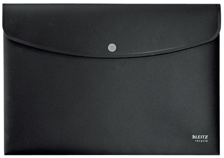 Eye-catching, premium quality PP Document Wallet for every day use in school, office and home with push button closure to prevent documents from sliding out. Made from 80% recycled plastic, 100% recyclable and with Blue Angel environmental certification. This robust and practical document wallet perfectly complements other products from the Leitz Recycle range and is made to last. Modern and contemporary green stationery that will look great at home and in the office. With the eco friendly Recycle range from Leitz you can both improve your office environment – and the environment of our planet.