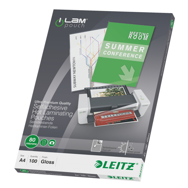 Leitz iLAM Self-adhesive A4 Laminating Pouches, 80 microns, Pack of 100
