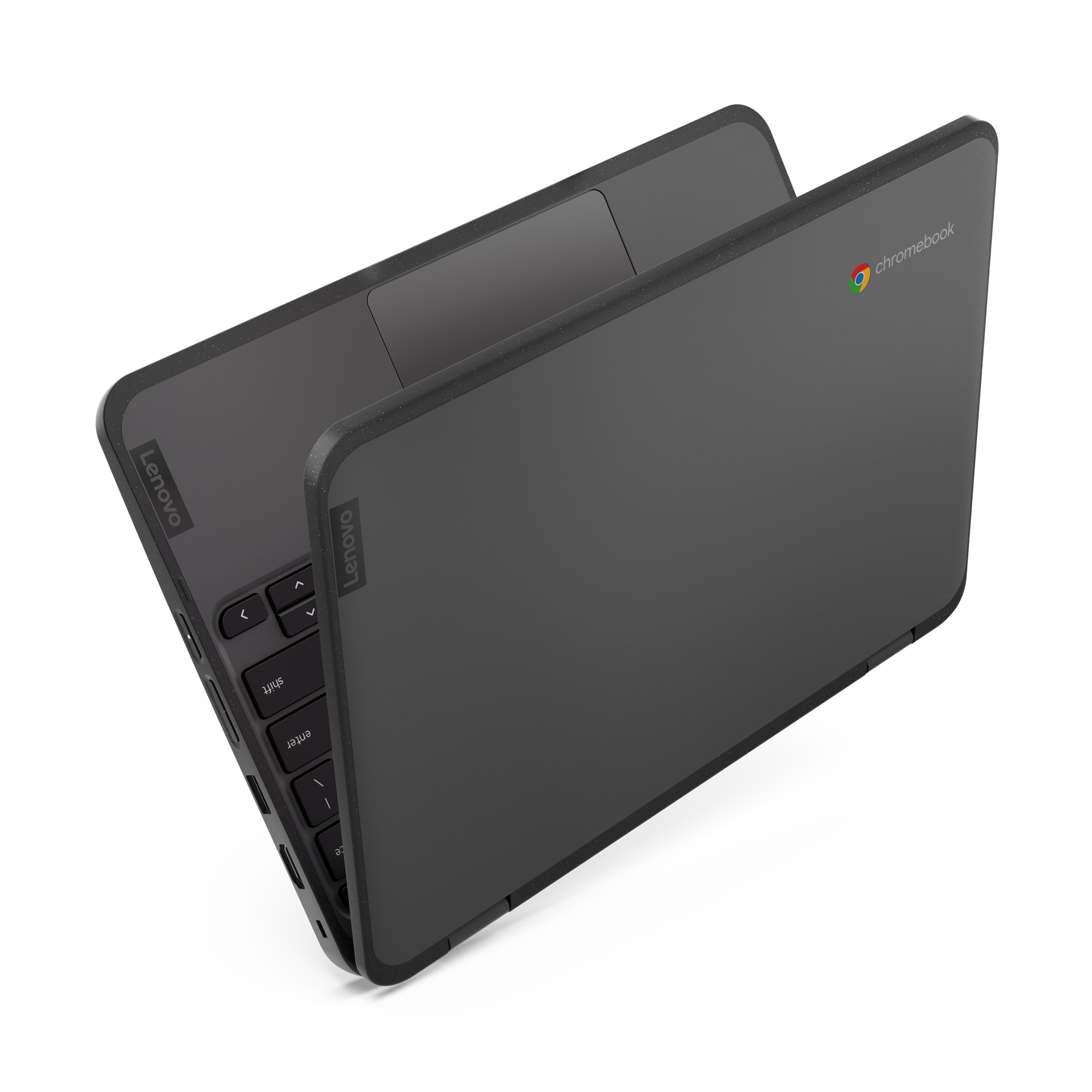 Lenovo 500e Chromebook Gen 4s. Product type: Chromebook, Form factor: Clamshell. Processor family: Intel® N, Processor model: N100. Display diagonal: 29.5 cm (11.6"), HD type: HD, Display resolution: 1366 x 768 pixels, Touchscreen. Internal memory: 8 GB, Internal memory type: LPDDR5-SDRAM. Total storage capacity: 64 GB, Storage media: eMMC. On-board graphics card model: Intel® UHD Graphics. Operating system installed: ChromeOS. Product colour: Grey