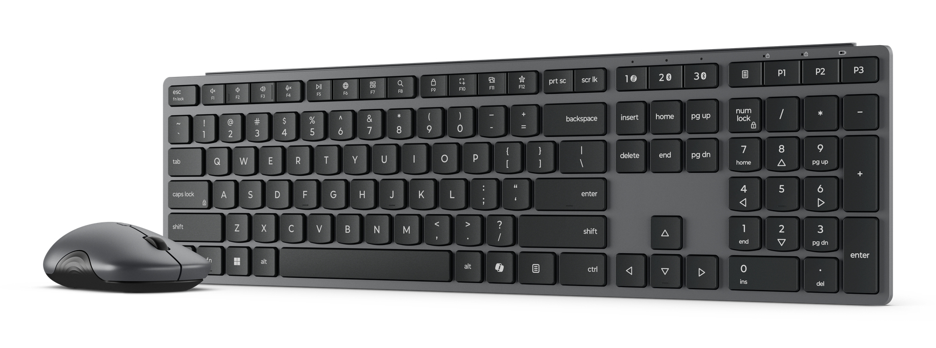 Crafted for professionals, our Keyboard & Mouse combo delivers unrivaled functionality, comfort, and style. The sleek, responsive keyboard ensures a silent typing experience, while the standard-sized, ambidextrous mouse offers ergonomic comfort and precise control. Seamlessly connect to up to 3 devices via Bluetooth and 2.4GHz for rock-solid reliability—perfect for boosting productivity across all your devices.