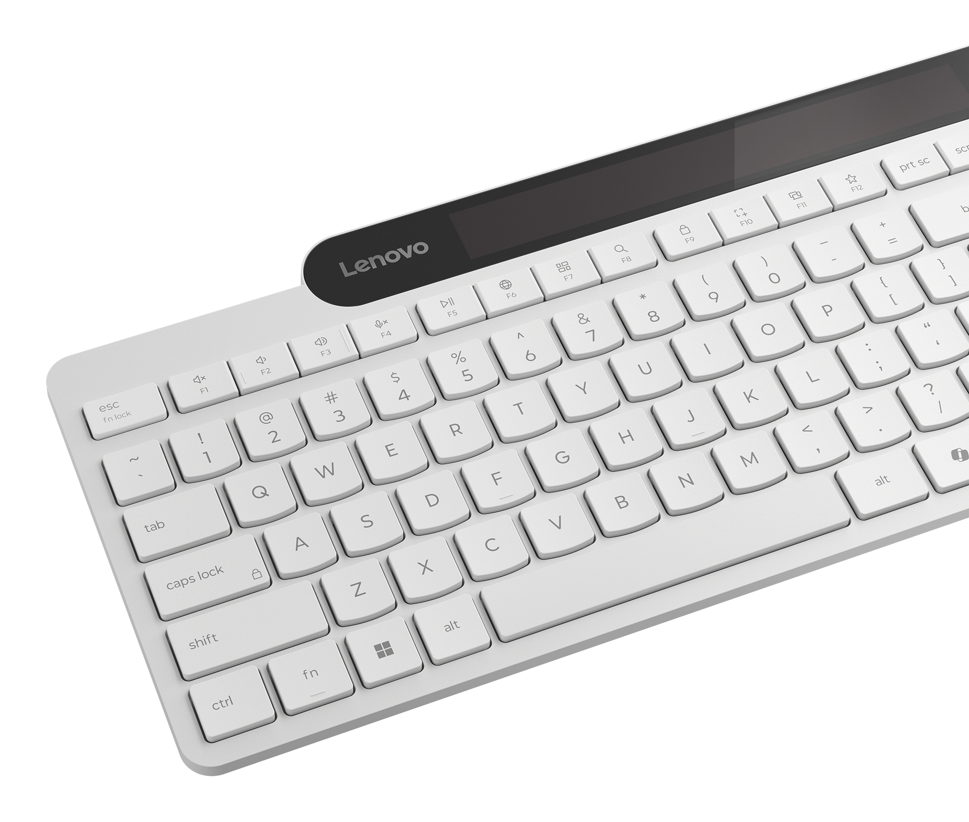 Designed for modern professionals and tech enthusiasts, Lenovo 800 Self-Charging Bluetooth Keyboard features advanced technology that sets a new standard in energy conservation. Its remarkable innovation lies in its battery-free design, which operates seamlessly using ambient lighting due to its superior low power consumption. The Bluetooth connectivity ensures a stable connection with up to three devices simultaneously. Additionally, the product is crafted from 95% post-consumer recycled plastic, reflecting a strong commitment to environmental sustainability.