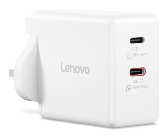 The Lenovo Dual USB-C 65W GaN Charger is the ultimate portable & lightweight dual-device charging product for PC and more devices for users